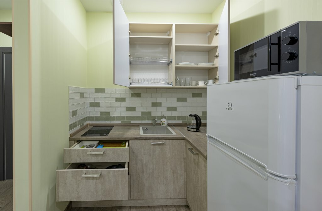 - Наличие всей необходимой техники (кондиционер, плита, холодильник, ТВ, микроволновка, стиральная машина и др.).