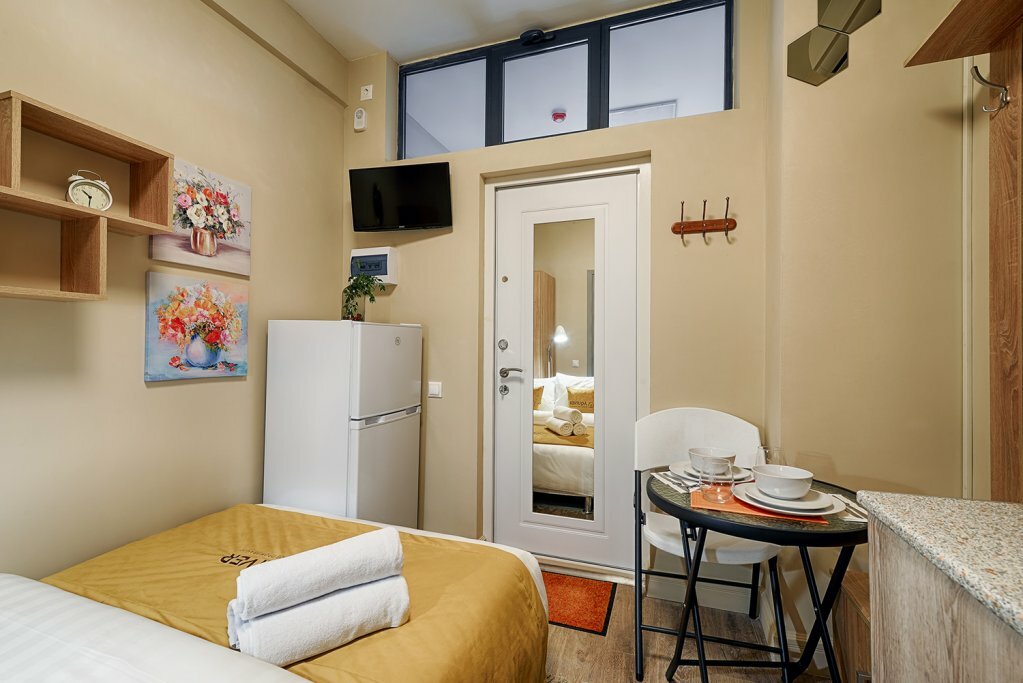 Ужасные апартаменты. Прокуренная маленькая конура без окон, чисто кости кинуть на ночь и то брезгливо… Сырость, потолок осыпается, в душ страшно залезать. Белье тоже какое то несвежее. Не было в ‘апартаментах’ ни туалетной бумаги, ни чистых свежих полотенец (были полусырые с желтыми пятнами и запахом курья), ни мыла, ни пакета в мусорном ведре, обещанных тапочек тоже. Утюг сожжённый, хотя он был очень нужен ! Запах курева не выветривался… Слышимость потрясающая, ночами соседи снизу убивали друг друга, мат, ор, полет мебели ! Неожиданный залог в количестве 2 тысяч тоже не порадовал. Хозяева не предупредили. Хотя может у меня это были не лишние деньги. В общем, если бы можно было, я бы поставила жирный минус этому жилью и посоветовала бы обходить это место стороной.