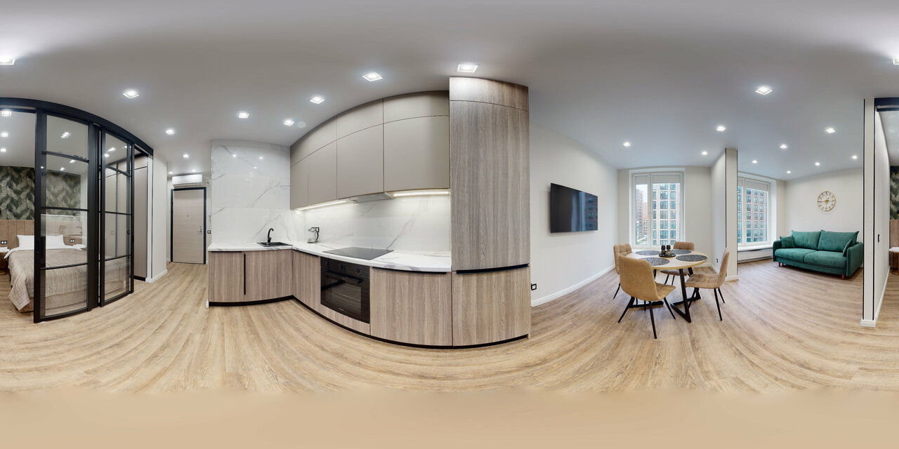 Новые апартаменты категории Делюкс с отдельно выделенной зоной с двуспальной кроватью, кухней, и двуспальным диваном-кроватью, почувствуй себя как дома! При проживании гостей с животными при заезде берется возвратный депозит в размере 15000 рублей.