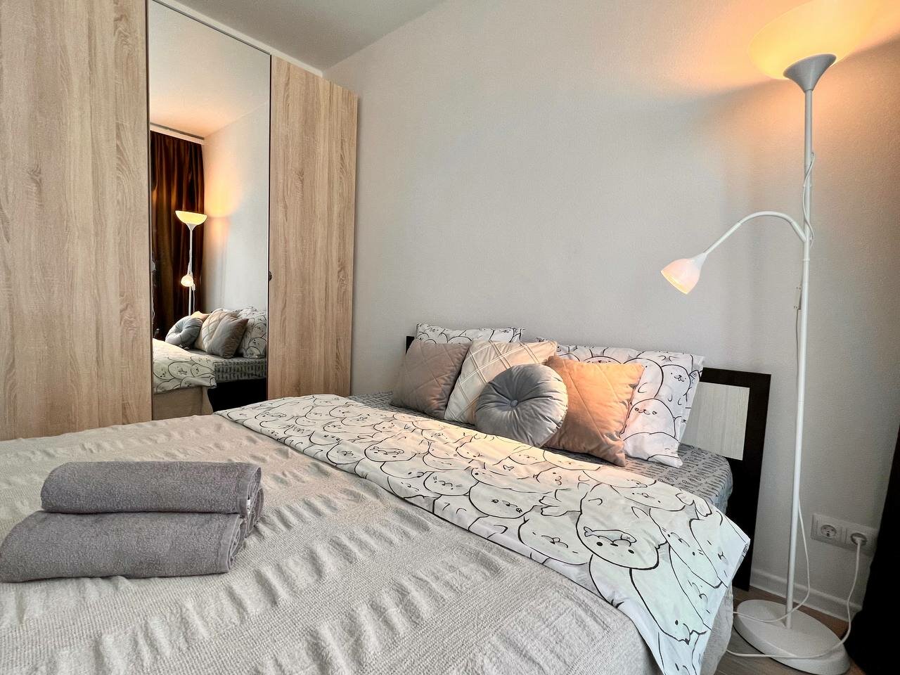 Бронировали квартиру на 2 суток , все чисто убрано . Менеджеры работают оперативно , телевизор перестал работать , проблему решили за 30 мин в онлайн режиме . Постельное чистое , полотенце . Спасибо за комфорт приедем к вам еще