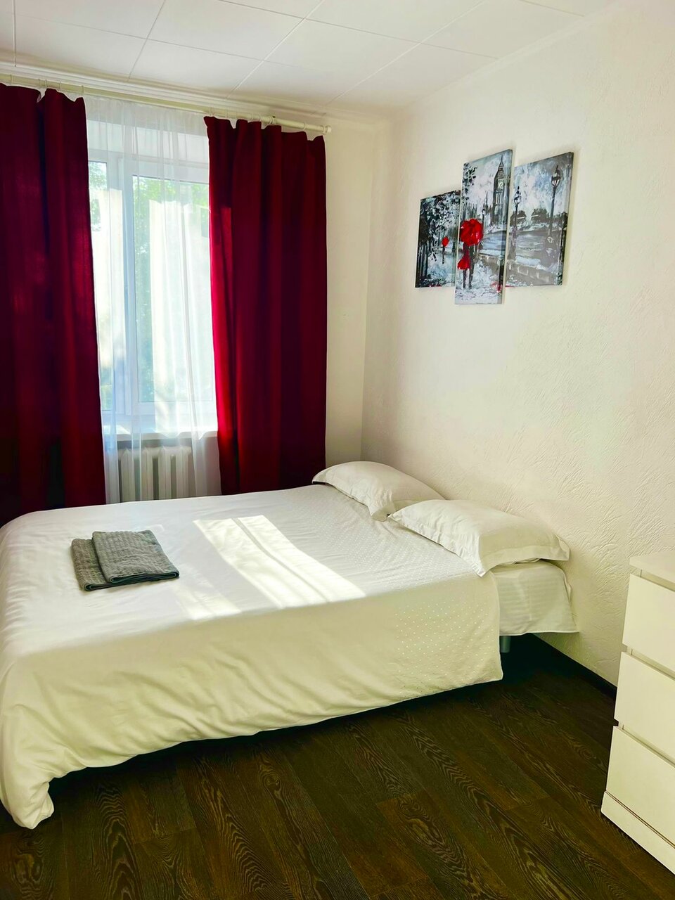 Не рекомендую категорически! В квартире едкий запах плесени, она же присутствует на стенах в спальне. Линолеум перед туалетом на швах закрутился от сырости, ночью не безопасно, можно упасть. На кухонных шкафах ручки липкие от грязи и жира. Грязь на всех ручках окон и дверей. Подоконник на кухне и комод в спальне пришлось отмыть самой. Очень грязная постель, есть ощущение, что стирается без порошка, вся в пятнах и волосах( Спать пришлось в спортивном костюме с капюшоном на голове и открытыми окнами ( запах плесени). 3 суток Ада. Такое же отношение и администрации. Залог выбивался 2 суток. И номер квартиры и алгоритм заселение сообщили за час до 12:00, но вселение задержали на час. Если вы в этой квартире задержитесь на час, лишитесь залога в 3000
