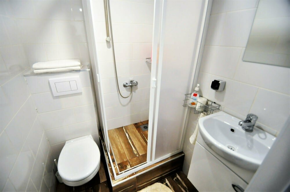 Как то получилось, что цена за 3 ночи вышла в районе 8,5 тысяч. За такую сумму все приемлемо. Но позже цена на сайте стала за следующие 3-4 дня — 16-18 тысяч ( уж не помню) и мы не ствали продлевать. Плюсы: расположение (хотя продуктовых магазинов кот наплакал, есть магазин евроспар относительно недорогой), есть телевизор, вай-фай, кухонные принадлежности. Минусы которые за 8 тыс можно и не указывать : немного дует из окна, состояние душевой оставляет делать лучшего, тонкие стены, слышно соседей.