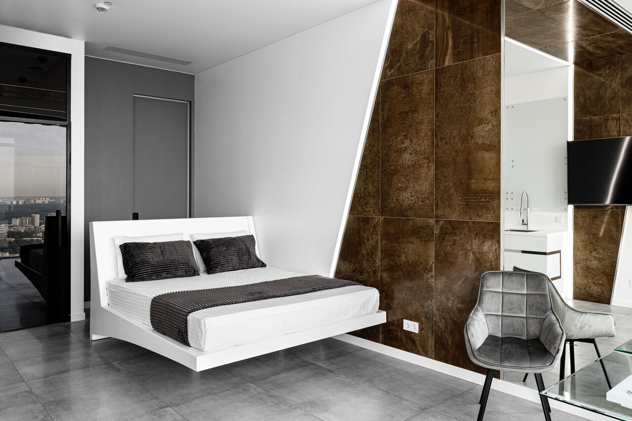 - Автоматические шторы с кнопочным управлением.; Подходит для фотосессий.; Быстрое заселение.; Красивый, стильный номер, соответствует фото.; Чистота в номере.