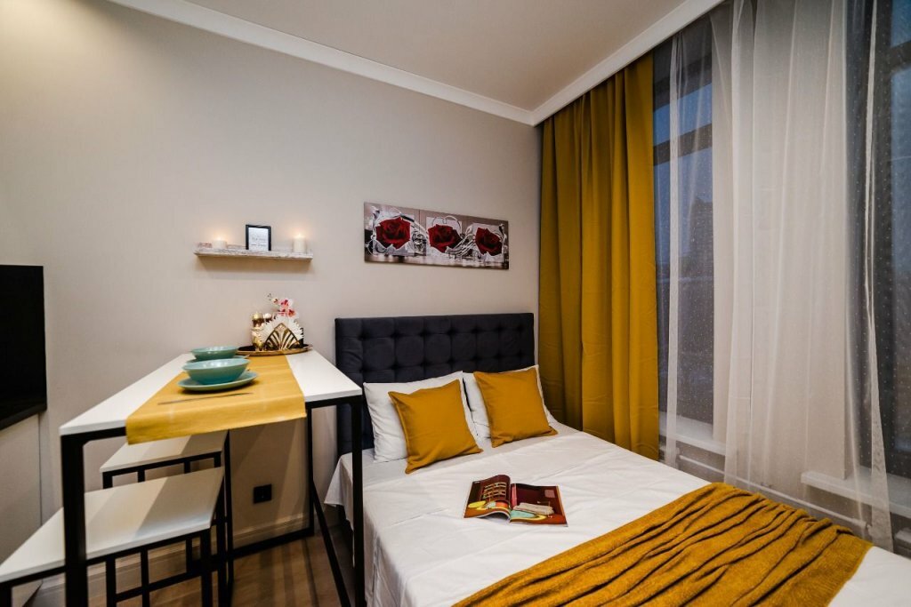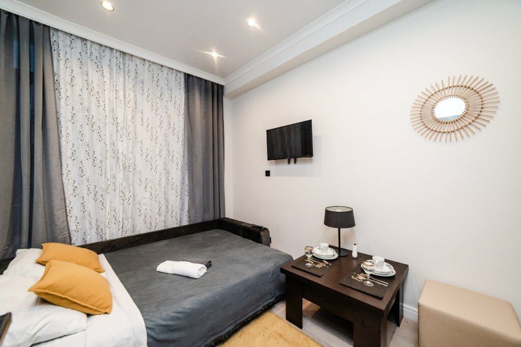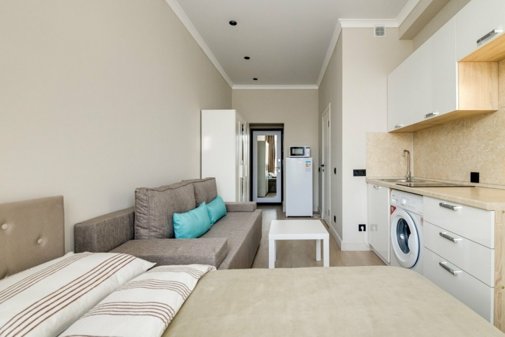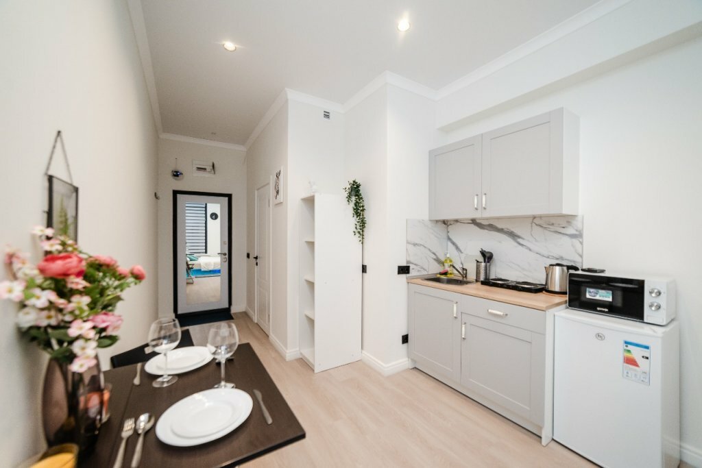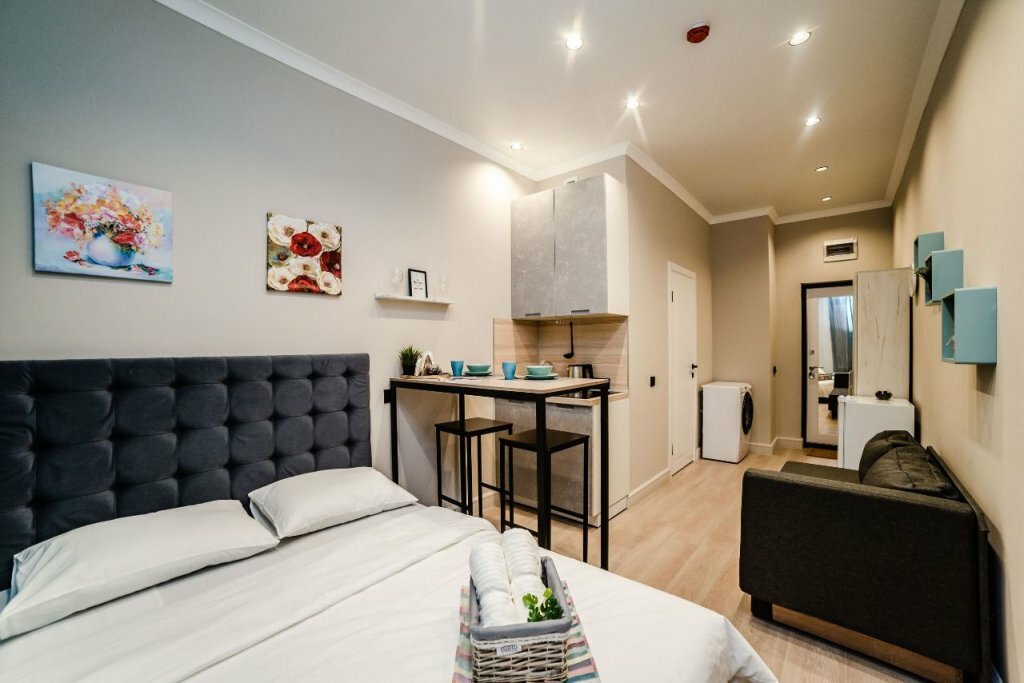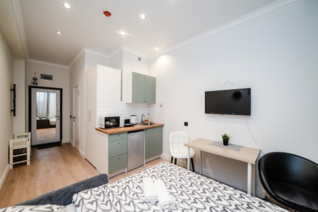 Номер класса Стандарт с собственной ванной комнатой и кухней. Бесплатный Wi-Fi. Бесплатная охраняемая парковка. Курение в номерах запрещено. Гипоаллергенный. Без завтрака.