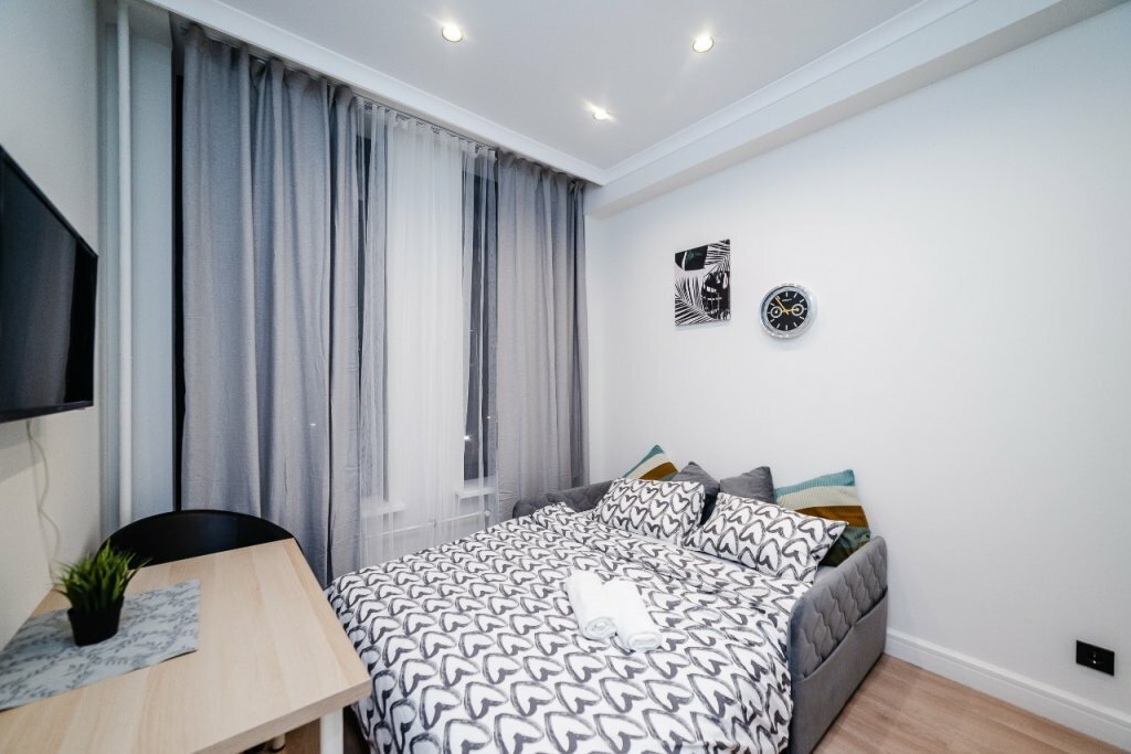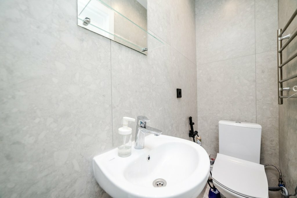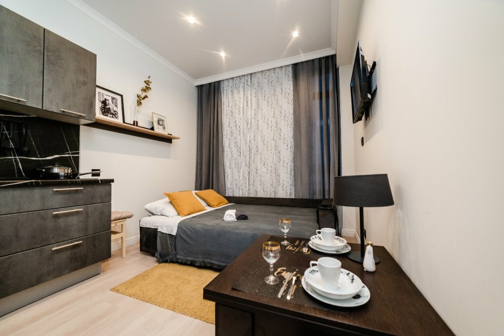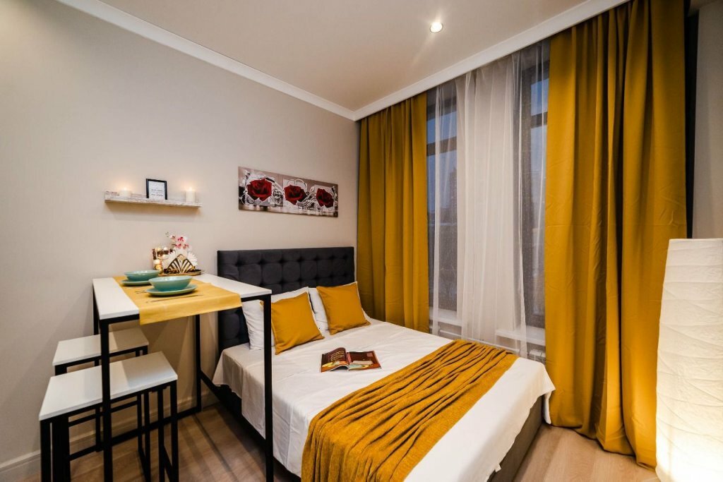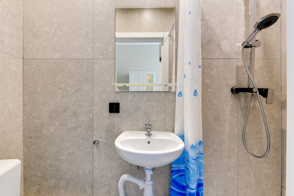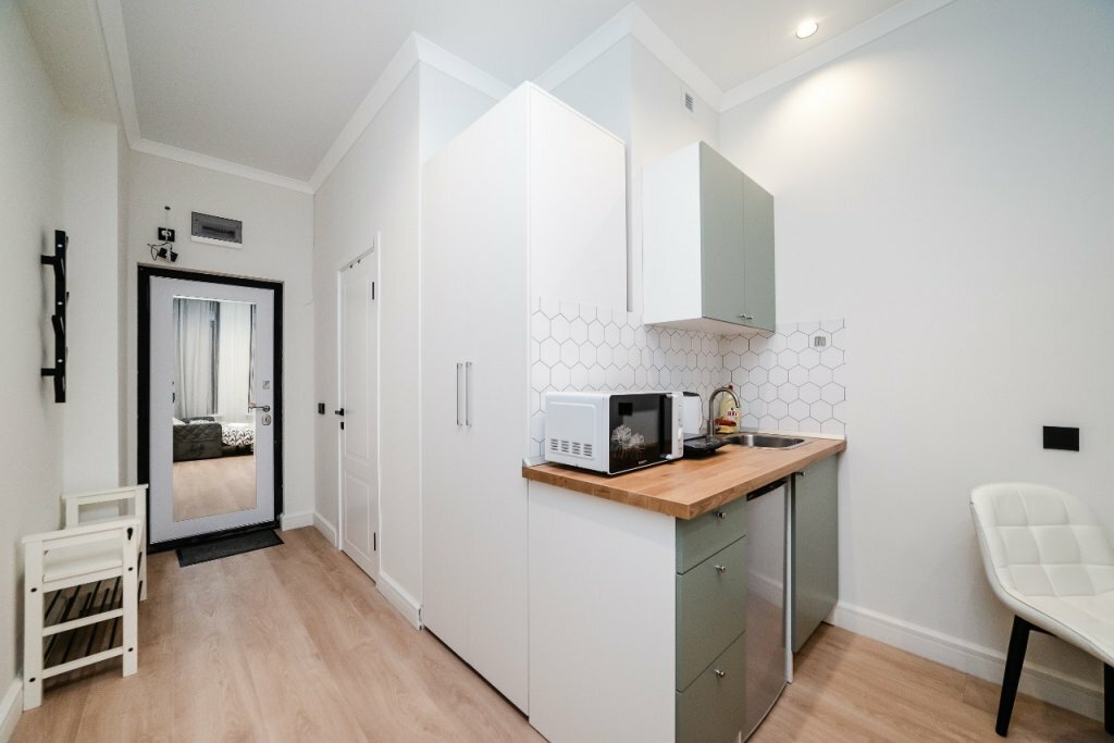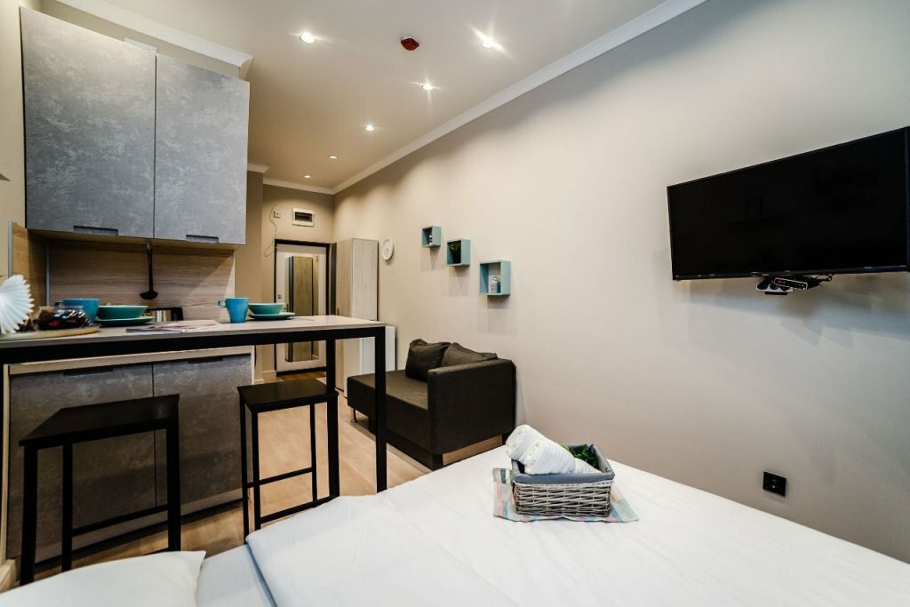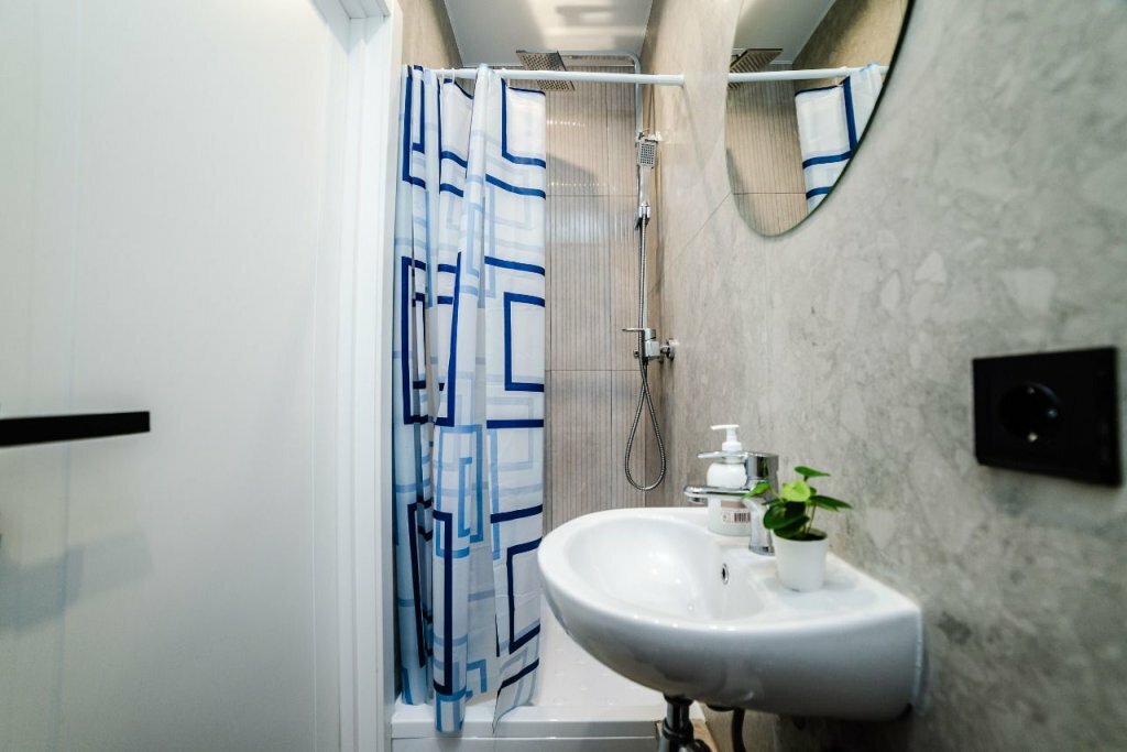 Удобно, что рядом с метро. Квартира с кодовой дверью. Внутри относительно чисто: в душе оказался грибок, полы в квартире не мыты, а в остальном чисто. Из минусов также капающий гигиенический душ, когда открываешь воду в кране раковины. Из плюсов есть почти всё для комфортной жизни: утюг, стиралка, микроволновка, чайник, холодильник. Одеяло в номере для двоих почему-то одно и тонковато, зимой точно замерзнете