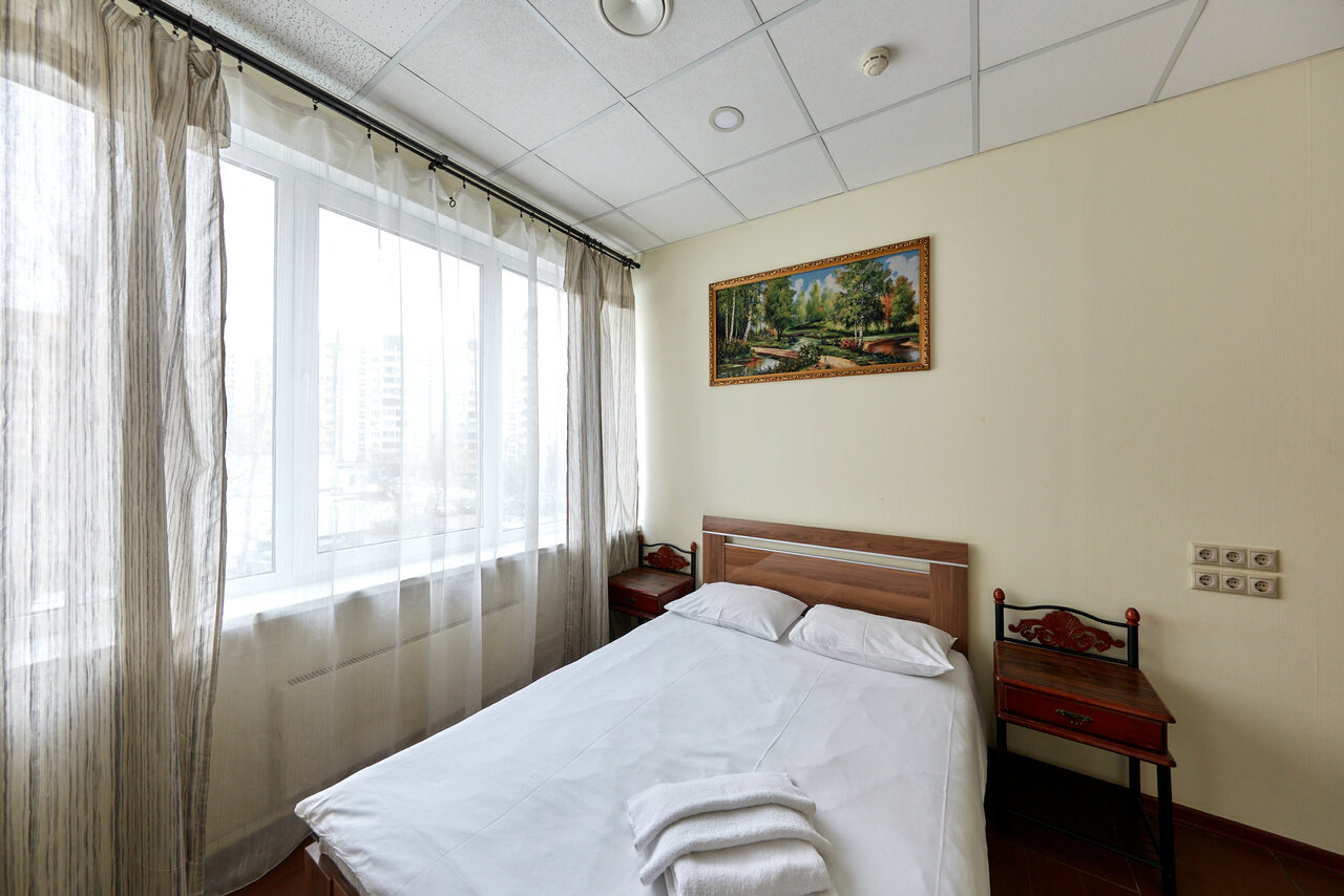 Очень удобное месторасположение. Рядом станция метро, магазины, кафе, аптеки, хорошая транспортная развязка и наличие парковочных мест. В номере туалет и душ. Номер очень светлый, с большим окном, но шторы необходимы более плотные. Удобная кровать, хороший матрас и качественное белье.