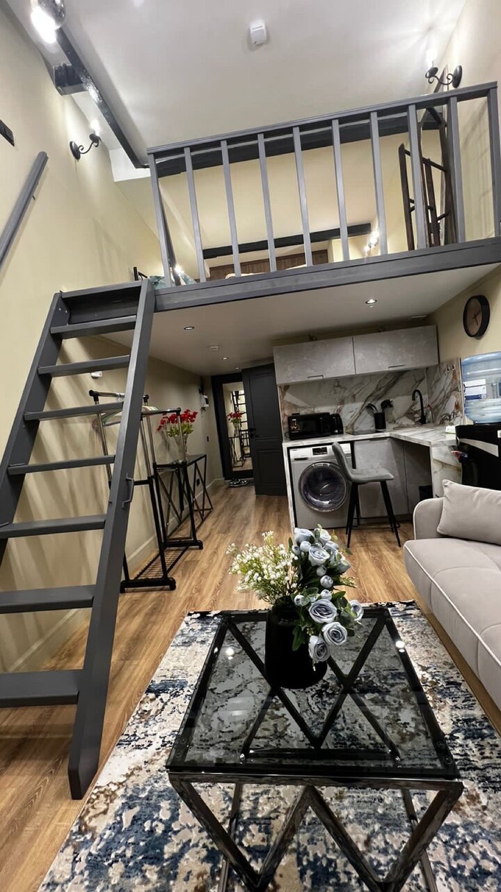 Там так красиво…. Фитнес центр и комната отдыха с мягкими креслами…. Большой телевизор…. Каскад водопада на первом этаже…. Лофты классные… Есть и 2 уровневые….