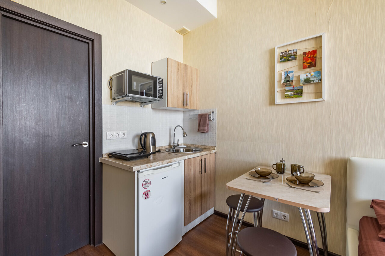 Апартаменты здесь отличные, бронировала себе номер удаленно, предоплату не вносила, оплатила на месте, когда заселялась. Все здорово с организацией. Чистота везде и порядок. Набор полотенец, тапки. В номере прохладно было, но я включила кондиционер на обогрев, в номере стало тепло в течение 15 минут