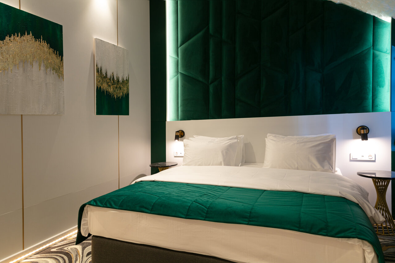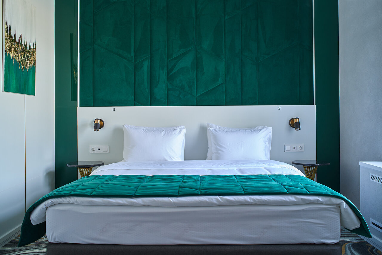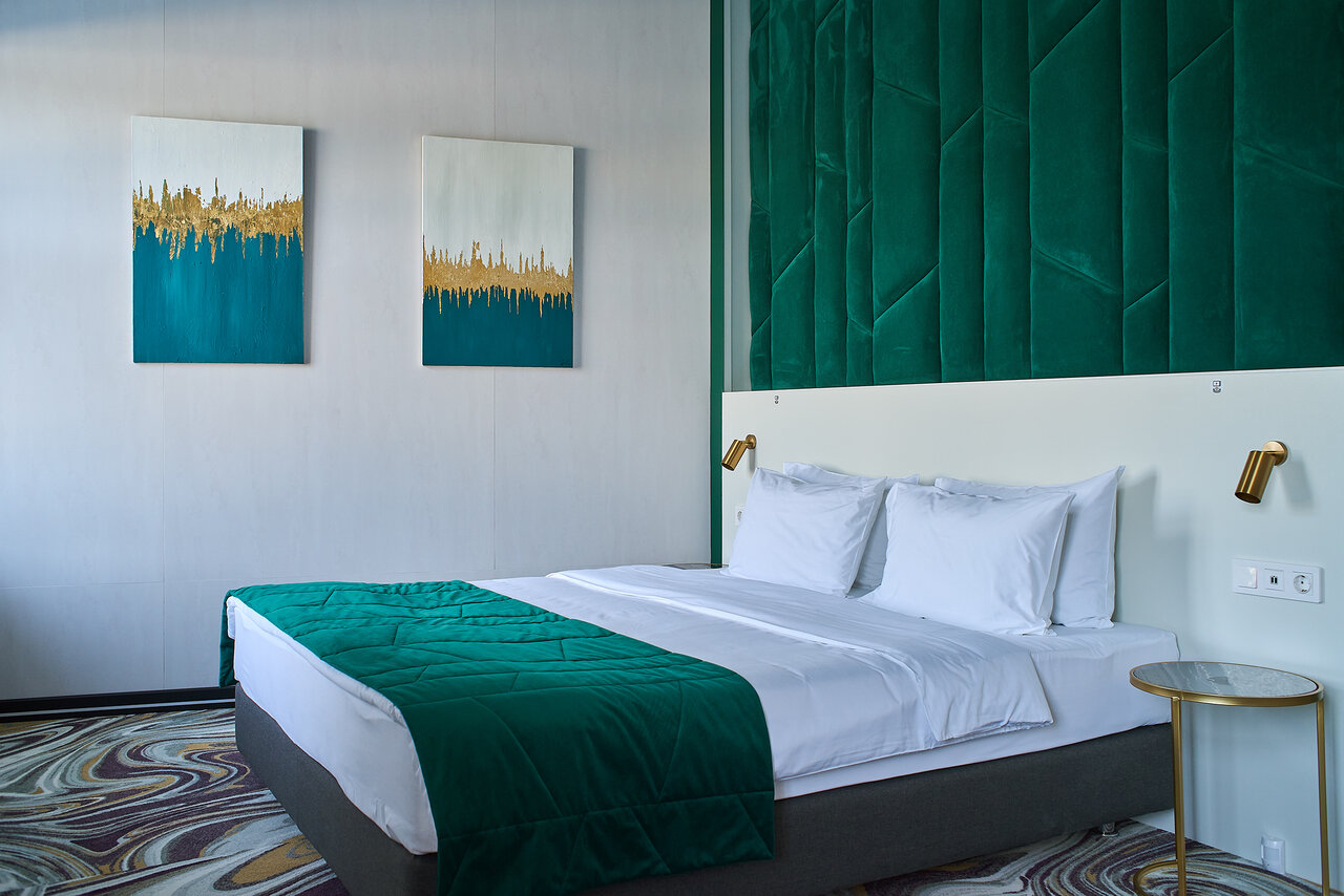 Удобства: — Номера с кондиционером, Wi-Fi, звукоизоляцией, мини-баром, сейфом, феном, халатами и тапочками. — Завтрак по меню, доставка еды и цветов в номер. — Бесплатные детские кровати (0–3 года), прачечная, ускоренная регистрация. — Рядом парк, магазин в отеле, автоматическая дверь.