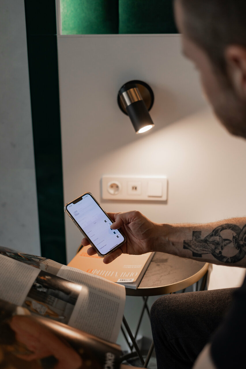Новый технологичный отель! Управляешь светом, шторами и телевизором в номере через смартфон.