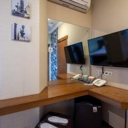Хороший отель. Жил в Люксе. Номер понравился. Тихо, чисто. Чайник, сейф, кондиционер в наличии. Единственное-далековато от метро.