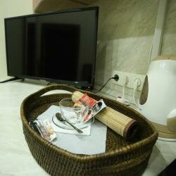 Площадь 27 кв.м.КондиционированиеШкаф/ГардеробВанная комната:Собственный санузелТапочкиДушФенКухня:ХолодильникКофе/ЧайЧайникЭлектроника и развлечения:ТелевизорКабельное ТВ
