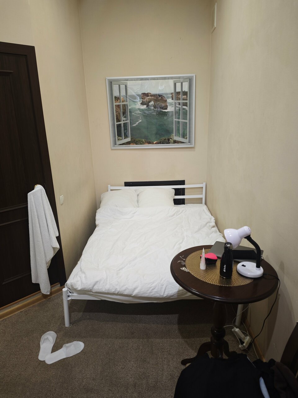 Можно было что-то написать об отеле, если бы получилось заселиться. Но, увы. Во-первых, местоположение отеля — да, это центр, но найти вход в гостиницу во дворах — то еще приключение. Преодолев эту преграду, столкнулись с тем, что стойки ресепшен как таковой нет, есть небольшая комнатка с надписью ресепшен, в которой никого не было. После 5 минут поисков администратора, которые не увенчались успехом, пришлось искать другой отель.
