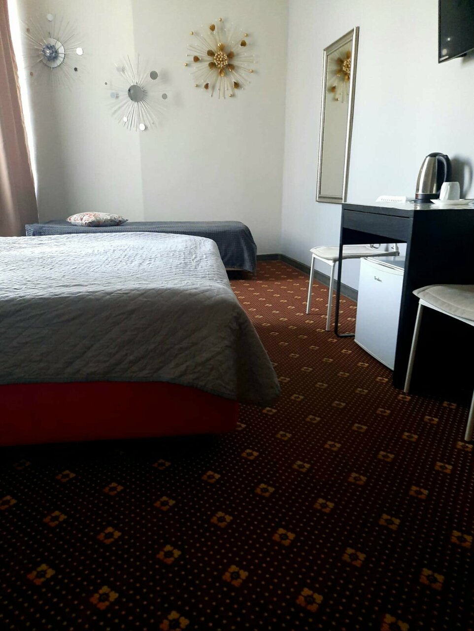 Очень приличный отель, чисто, уютно, наличие бытовых мелочей, таких, как чайник, посуда, шампунь, фен, даже зубная щетка и паста, полотенца, шкаф для одежды, расположен в центре города, рядом метро, трамвай, обязательно приедем еще сюда