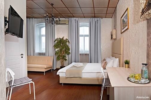 Отличный отель, все чисто, уютно, сделано со вкусом. Приятный интерьер, новая мебель, большая удобная кровать, белоснежные пушистые полотенца. Персонал вежливый. Очень доволен что остановился в Апельсине.