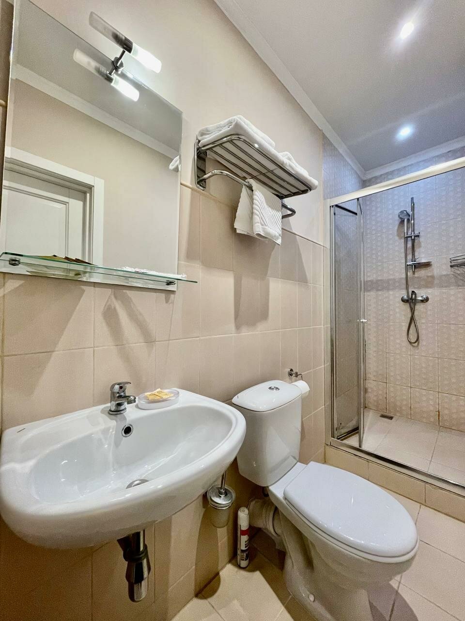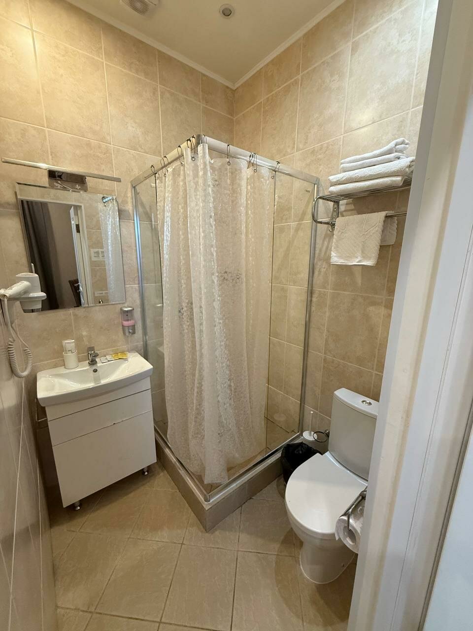 Уставший отель. Швы в ванной с плесенью. Это модно почистить или обновить быстро и дешево. Нет мыльницы, куда положить мыло. Неплохо было бы одноразовые тапочки добавить. Нет понятной информации о том, где ресепшен. Поднимаешься на третий этаж по лестнице, упираешься в дверь с объявлением о том, что оказывается есть лифт, и нужно вернуться вниз и тд
