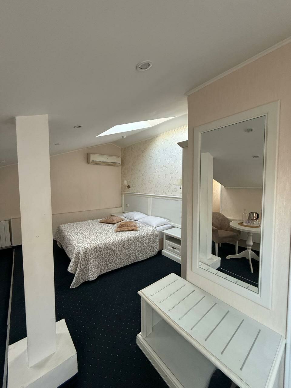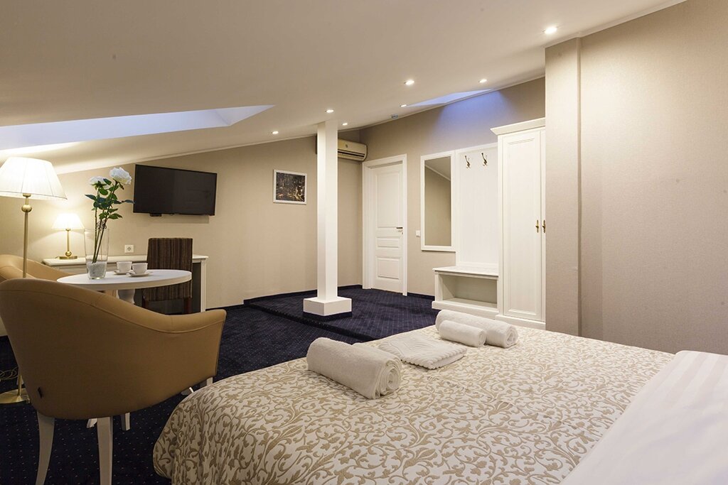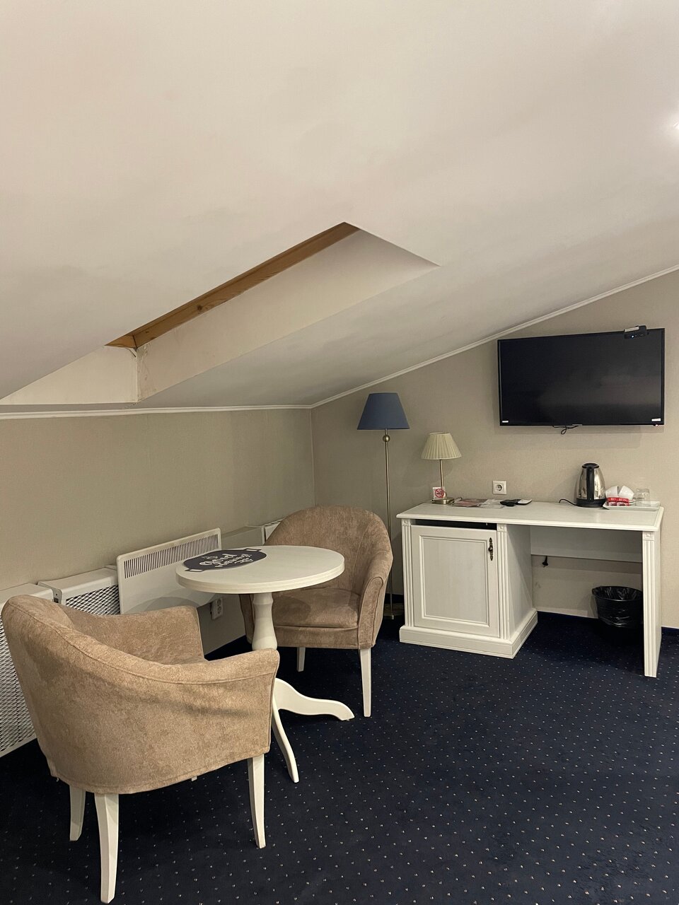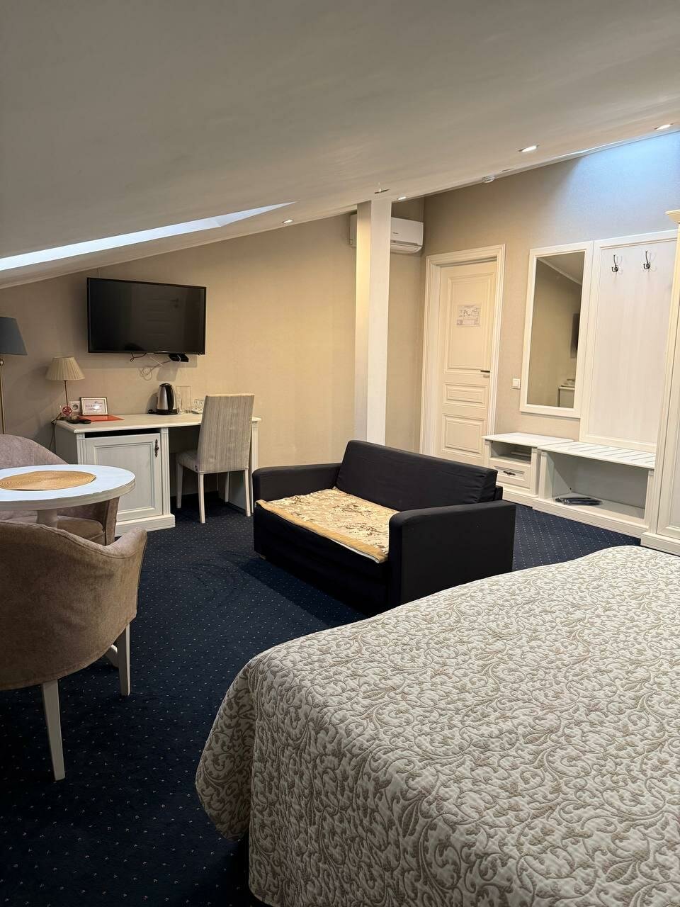 Небольшой, уютный, номера просторные, окна в крыше добавляют очарования. Неплохой мини-бар, есть душевой набор, есть кулер с водой и бутылка воды в номере. Находится в центре города, а значит здесь много маршрутов для пеших прогулок. Администратор — очаровательная дама. Из минусов: 1.слышимость (если не повезёт с соседями — выспаться будет сложновато), 2. Через верхнее окно солнце нещадно светит прямо в глаз (дело было летом, так что проснулась я в 5:30 утра), 3.шум на улице (т.к. это центр Москвы, то ночью тут гудят всякие лихачи на спорткарах), 4. Отсутствие хотя бы кофейни в отеле (позавтракать можно только на рынке в пешей доступности или запастись едой заранее). Как итог: рекомендую, но скорее молодым и интересующимся прекрасным, кому надо мало спать и много гулять и искать романтику.