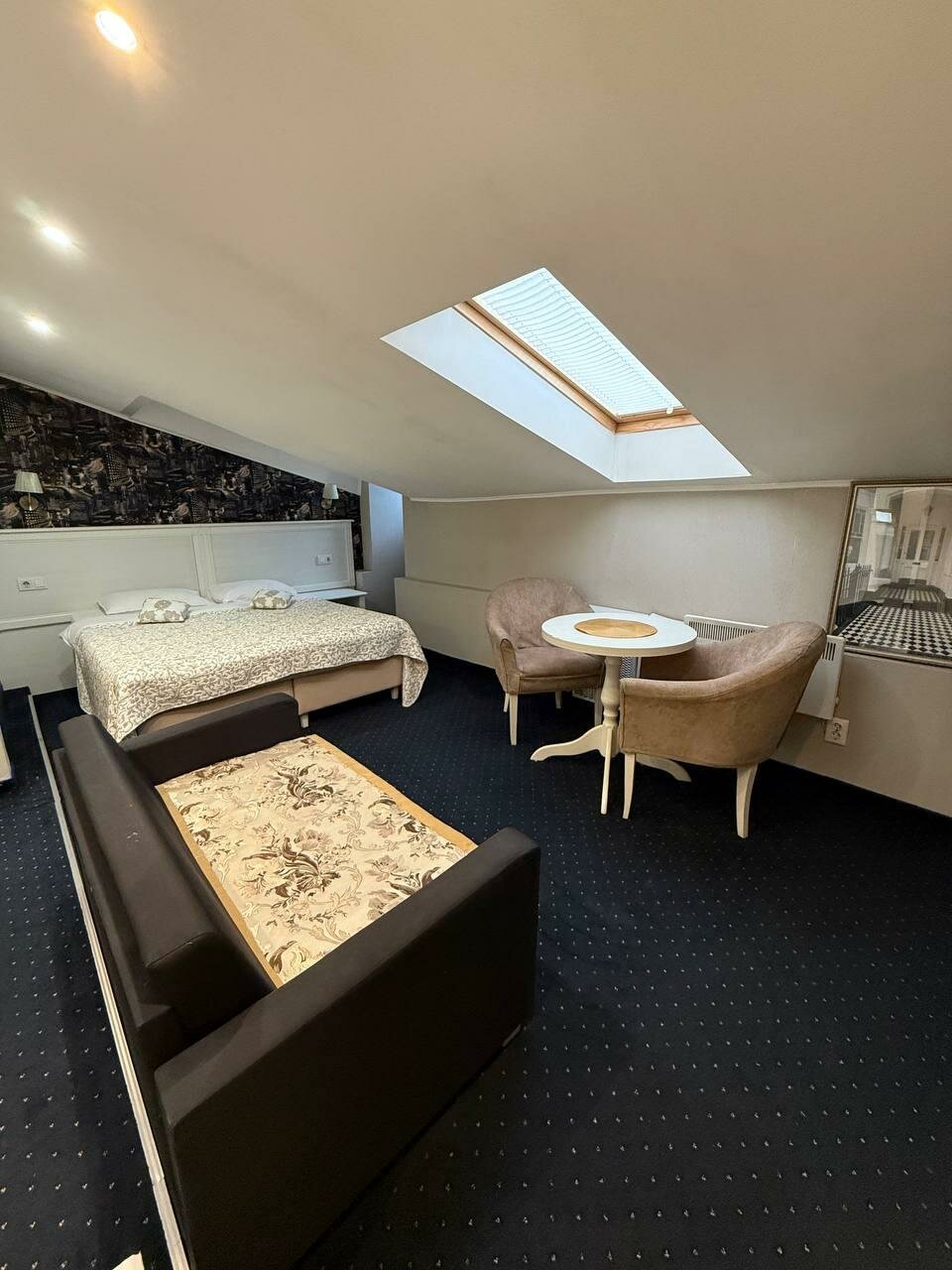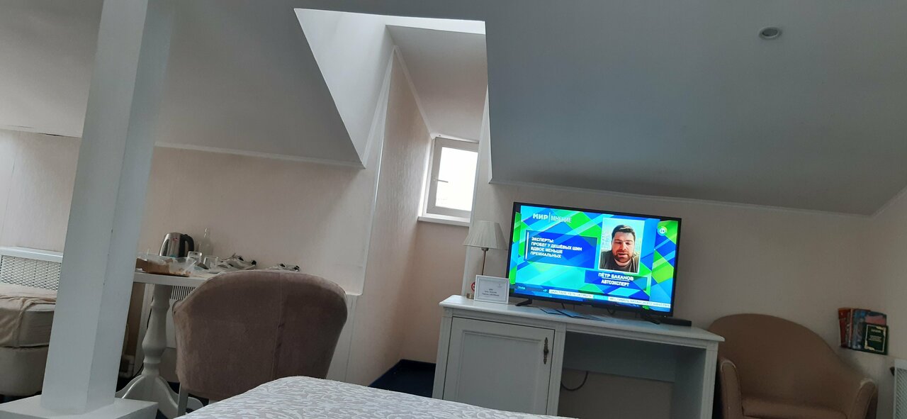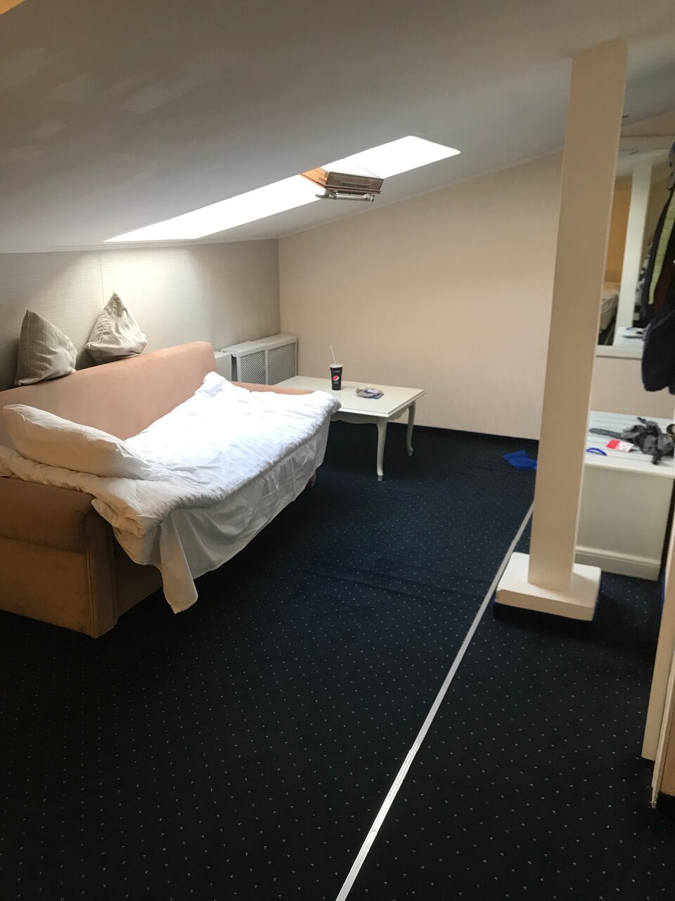 Забронировали с семьёй номер в этом отеле на Рождество Из плюсов это расположение и ещё наш номер был на мансардном этаже и это вид из окна .Из плюсов все Из минусов .Пытались по приезду включить телевизор оказывается не работает.Администратор развела руками и сказала а Вы что телевизор сюда приехали смотреть?)) Не критично ,но не очень приятно . Также кровать одна была большая и диван-раскладушка -это что -то!!!.Позвоничник чуть не стал по форме знака вопроса На вопрос переселить нас в другой номер ,сказали что все занято. Все обшарпано и жалко тех денег потраченных на этот отель Так как в хостеле бывает и лучше Надеюсь этот отзыв поможет кому нибудь .