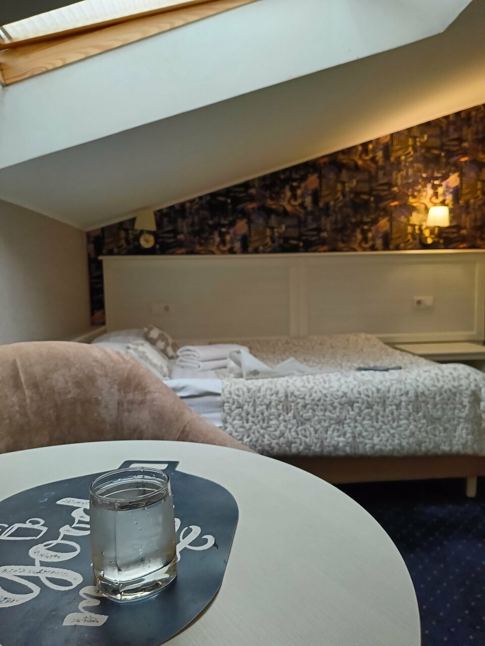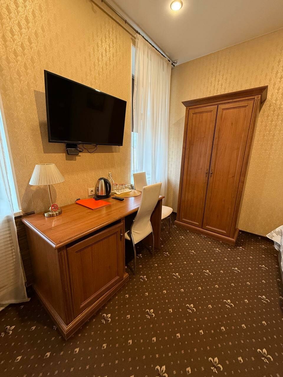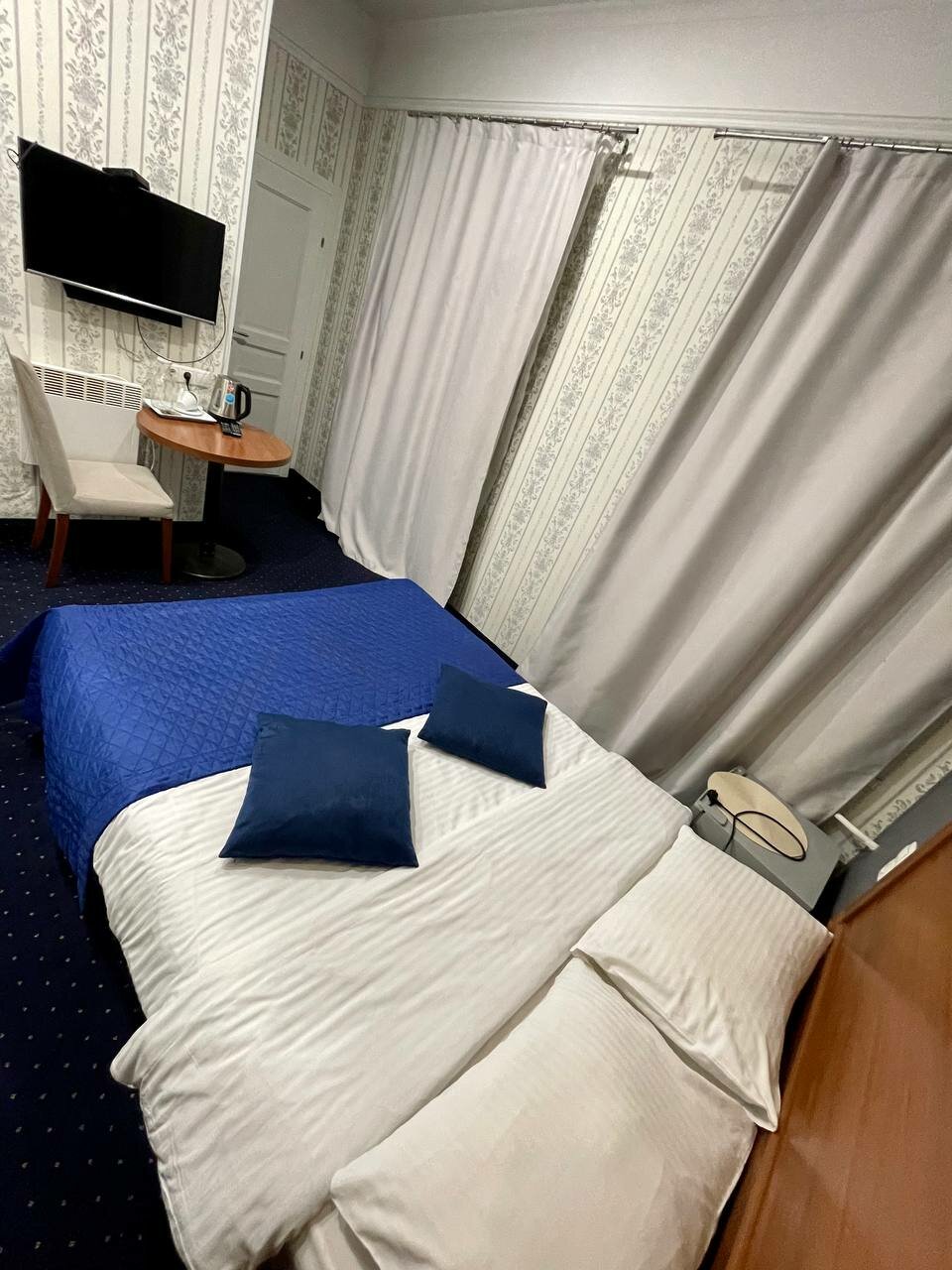 Забронировали с семьёй номер в этом отеле на Рождество Из плюсов это расположение и ещё наш номер был на мансардном этаже и это вид из окна .Из плюсов все Из минусов .Пытались по приезду включить телевизор оказывается не работает.Администратор развела руками и сказала а Вы что телевизор сюда приехали смотреть?)) Не критично ,но не очень приятно . Также кровать одна была большая и диван-раскладушка -это что -то!!!.Позвоничник чуть не стал по форме знака вопроса На вопрос переселить нас в другой номер ,сказали что все занято. Все обшарпано и жалко тех денег потраченных на этот отель Так как в хостеле бывает и лучше Надеюсь этот отзыв поможет кому нибудь .