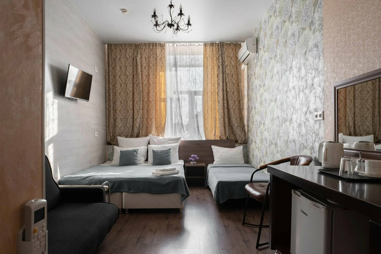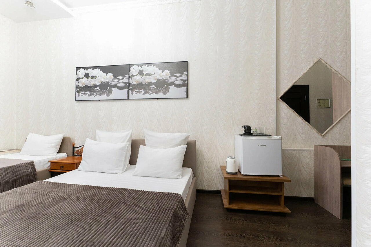 Отличный мини отель, геолокация на всё 10 баллов. Чисто, уборка каждый день. Девочки администраторы настоящие феи, очень отзывчивые. В номере есть фен, чайник, полотенца, чай, сахар, бутылка воды, шампунь, гель для душа, тапочки. Вернёмся ещё, 100%