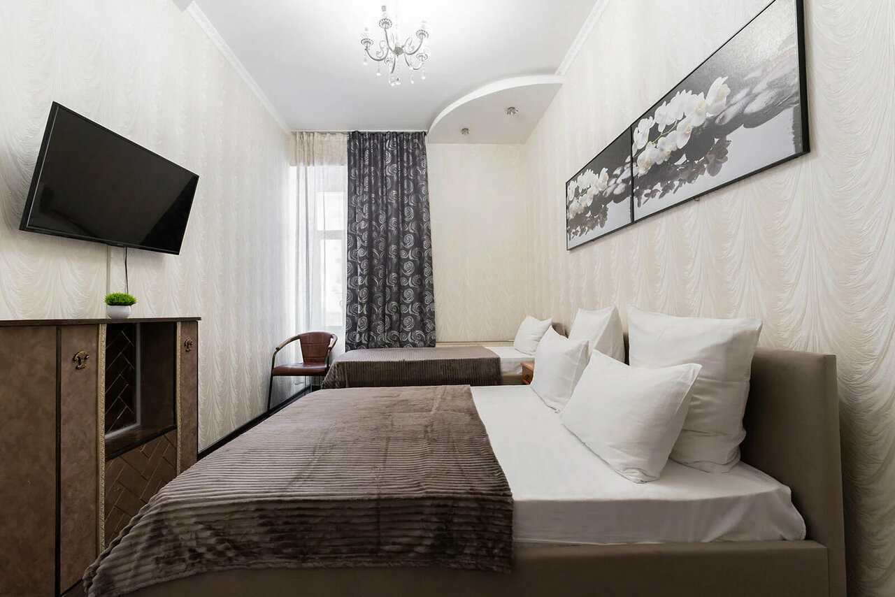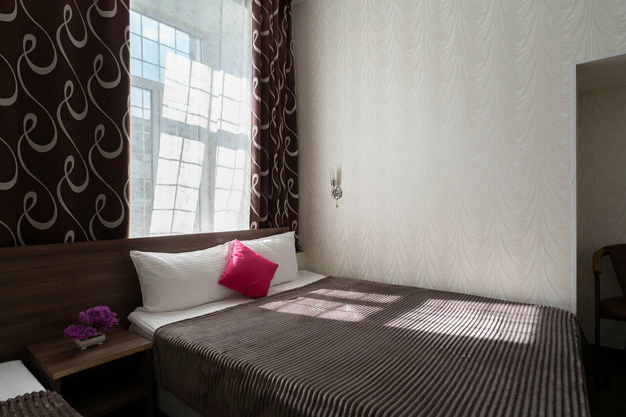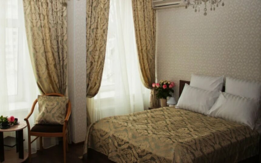 Расположена в центре Москвы на Тверской улице, 5/6, в шаговой доступности от театров, парков и главных достопримечательностей. Мини-отель категории 3★ предлагает комфортные номера (от 3500 до 6000 ₽/ночь) с кондиционером, звукоизоляцией, Wi-Fi, телевизором, мини-баром и чайной зоной.
