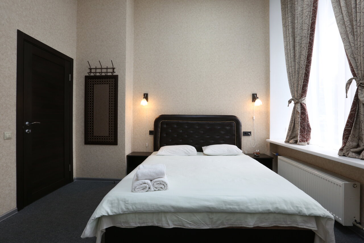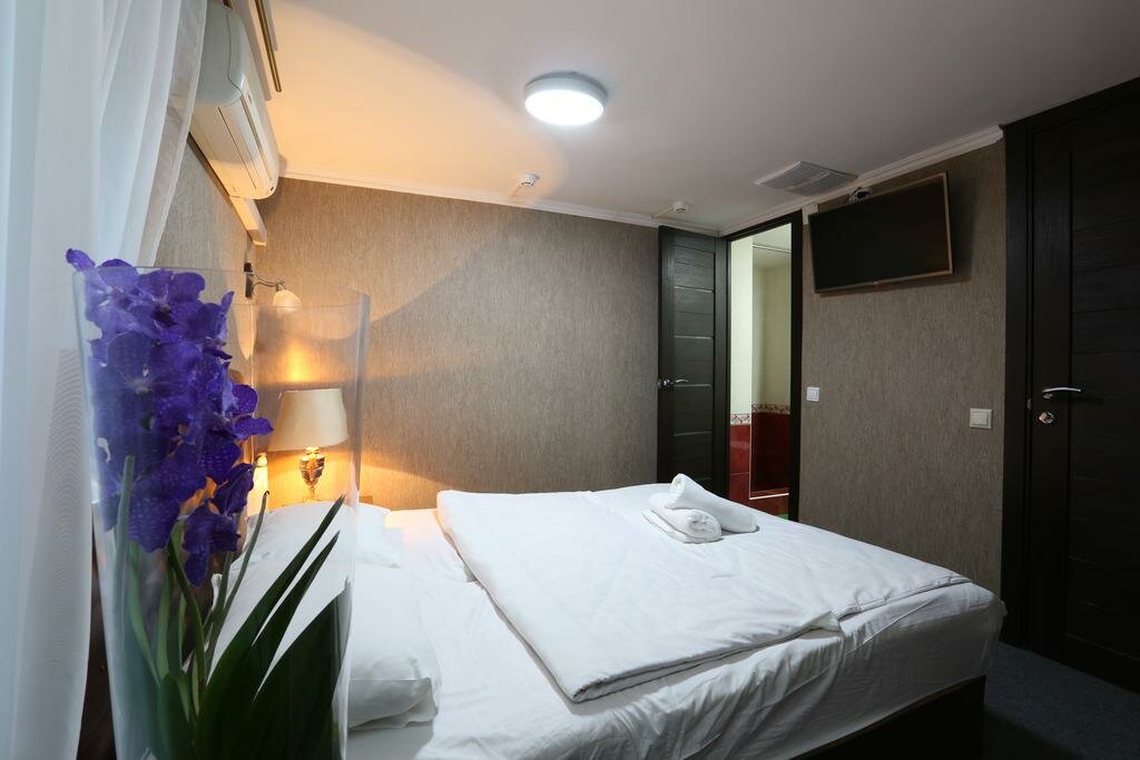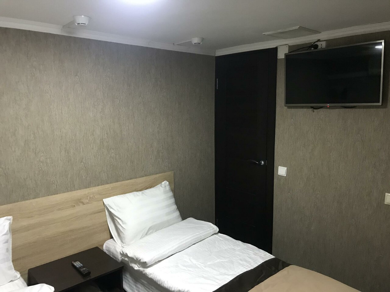 Комфортный номер Стандарт для 2 человек.Размер 16 – 20 кв. м.Номер оборудован ванной комнатой, холодильником, телевизором и кондиционером.Большая двуспальная кровать или две односпальные кровати на выбор.Цена зависит от месяца бронирования.