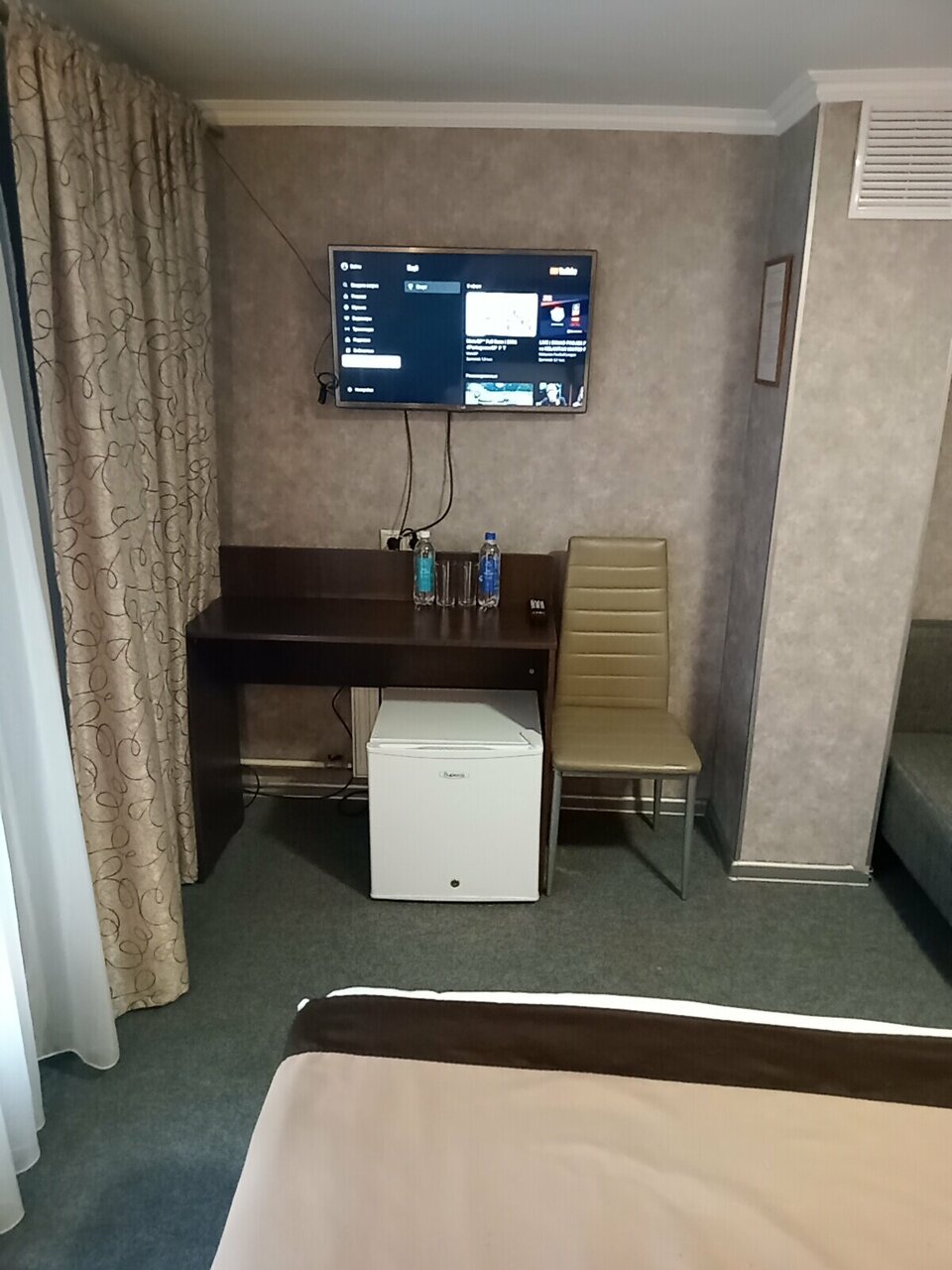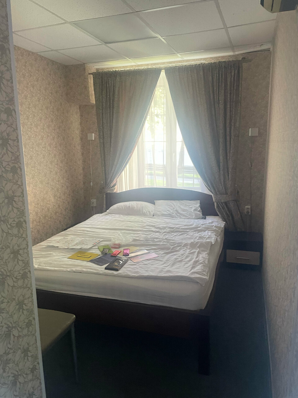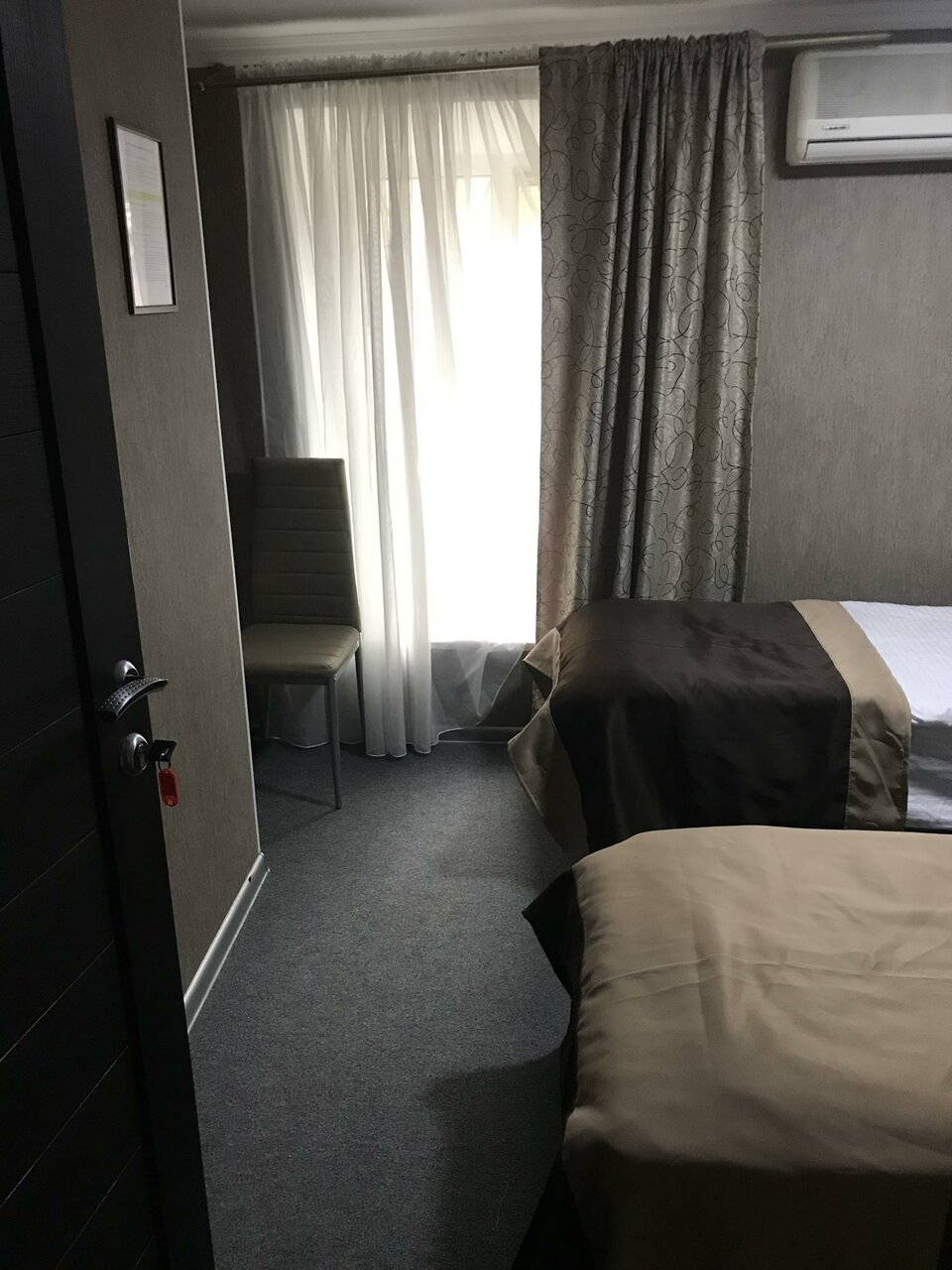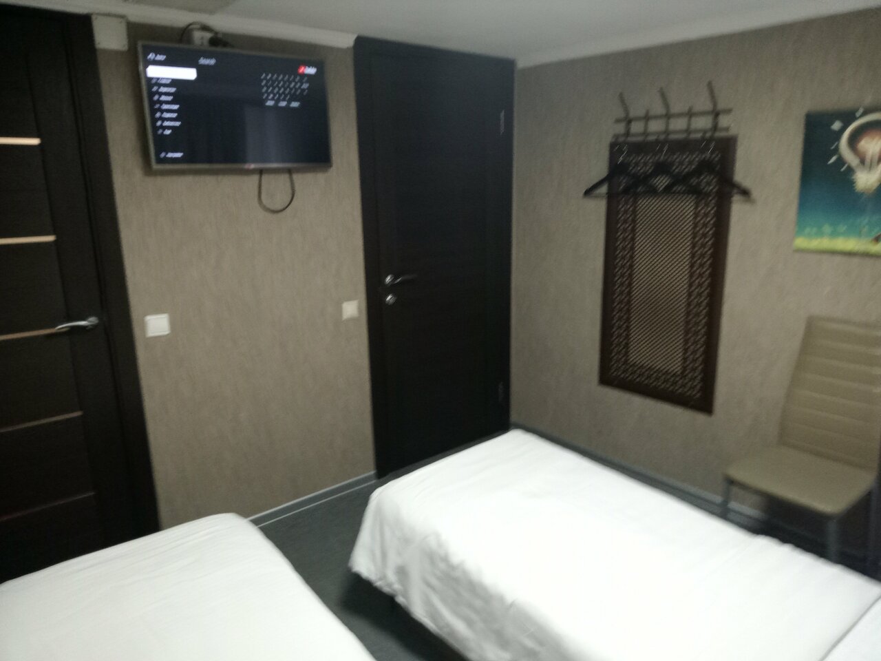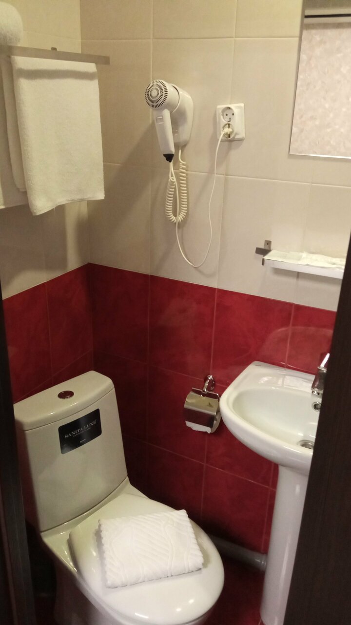 1. Воняет сигаретами, как будто кто-то курит прямо в номере. 2. Телевизор не работал — нет сигнала. 3. Ванная маленькая, и очень не удобно 4. Ужасно гудит батарея 5. Замок в номер не закрывался, администратор захлопнула со словами ну ваш ключ кто то забрал, будем так захлопывать, он же открывается с этим ключом, но не закрывается 6. При заселении долго ждать, ибо скан паспорта происходит, цитата у нас сканер старенький, не всегда работает 7. В номере до сигарет, Которыми завоняло ночью, был специфический запах Не придираюсь, но один плюс есть Останавливались на одну ночь. Завтра в другой отель.
