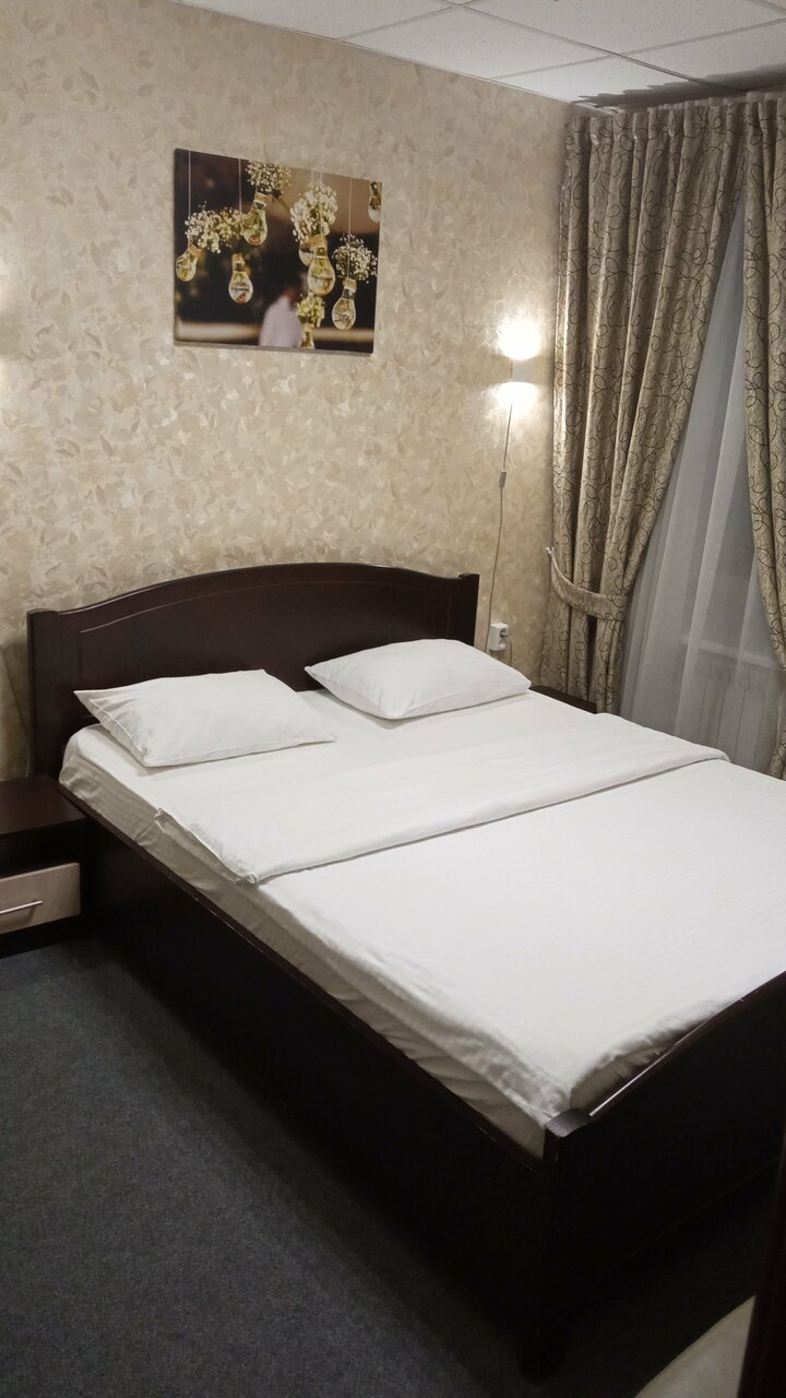 Номер малюсенький, весь номер занимала кровать, грязные шторы. В комнате ни чайника, ни чашки, ни ложки. Окна выходили на трассу, грохот сумасшедший спать невозможно, не рекомендую