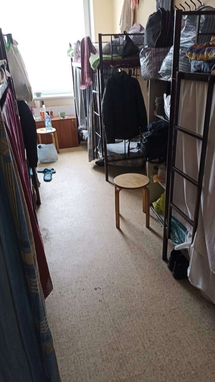 Грязи чистота не очень клоп разные мухи условия в комнате на 10 человек 2 розетки очередь на зарядное устройство на телефон на кухню нет условия не миковалновка не плиты не одной посуды мы живём 4 верный этажей лифт есть не работает не когда
