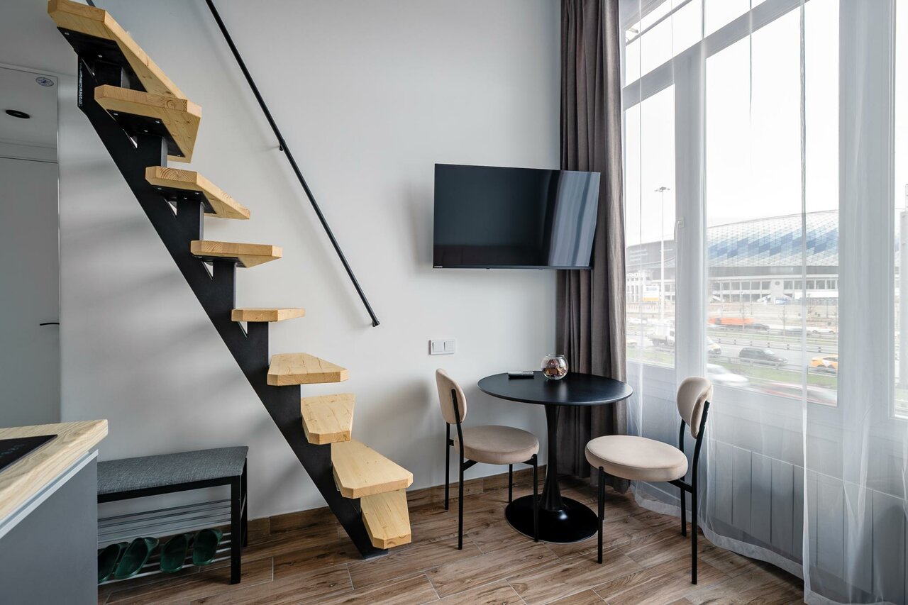 Очень уютные номера, интересная задумка со вторым ярусом. Много света и красивый вид на динамо.