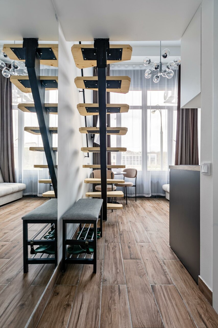 Удобное заселение. Квартира чистая, в хорошем состоянии. Надо учесть один нюанс для таких двухэтажных квартир: внизу будет прохладно, а на втором этаже душновато.