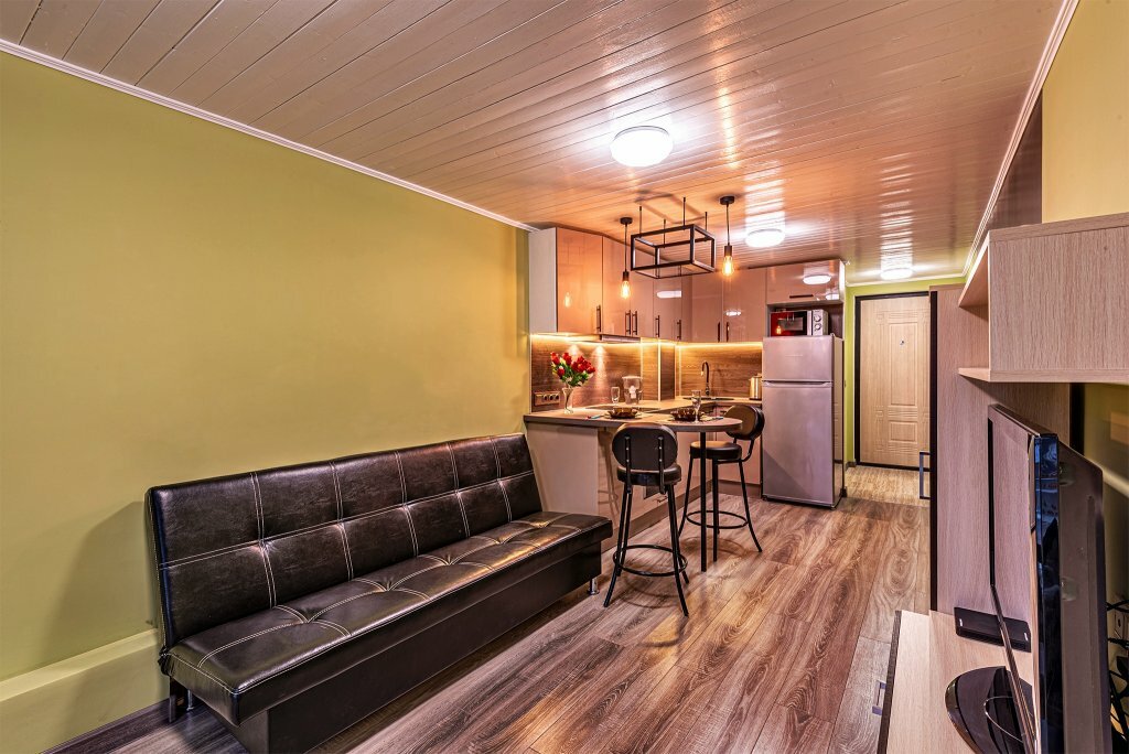 НЕ РЕКОМЕНДУЕМ ДАННЫЕ АППАРТАМЕНТЫ. Очень мало место, ремонт не соответствует фотографиям, которые показаны на сайтах. Грязно, НАКУРЕННО, ужасно. Лучше уж остановиться в хостеле, чем в этим апартаментах. Пришлось уехать жить в другое место, предоплату никто не возвращает.