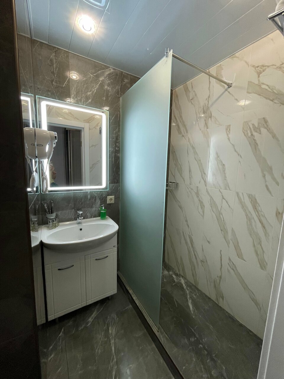 Отель новый ,чистый, уютный ! Проживание понравилось !В номере телевизор ,холодильник ,фен,чайник-всё что нужно для жизни ! Балл снижаю за обсчет на кассе (
