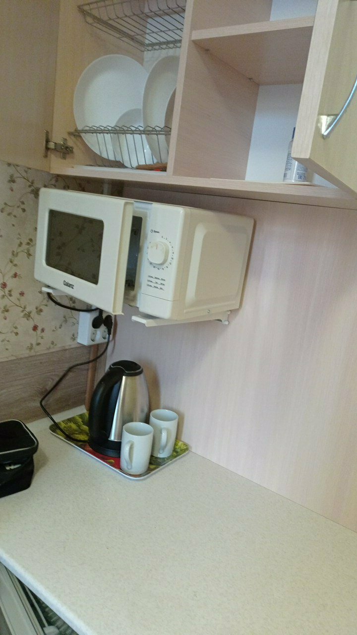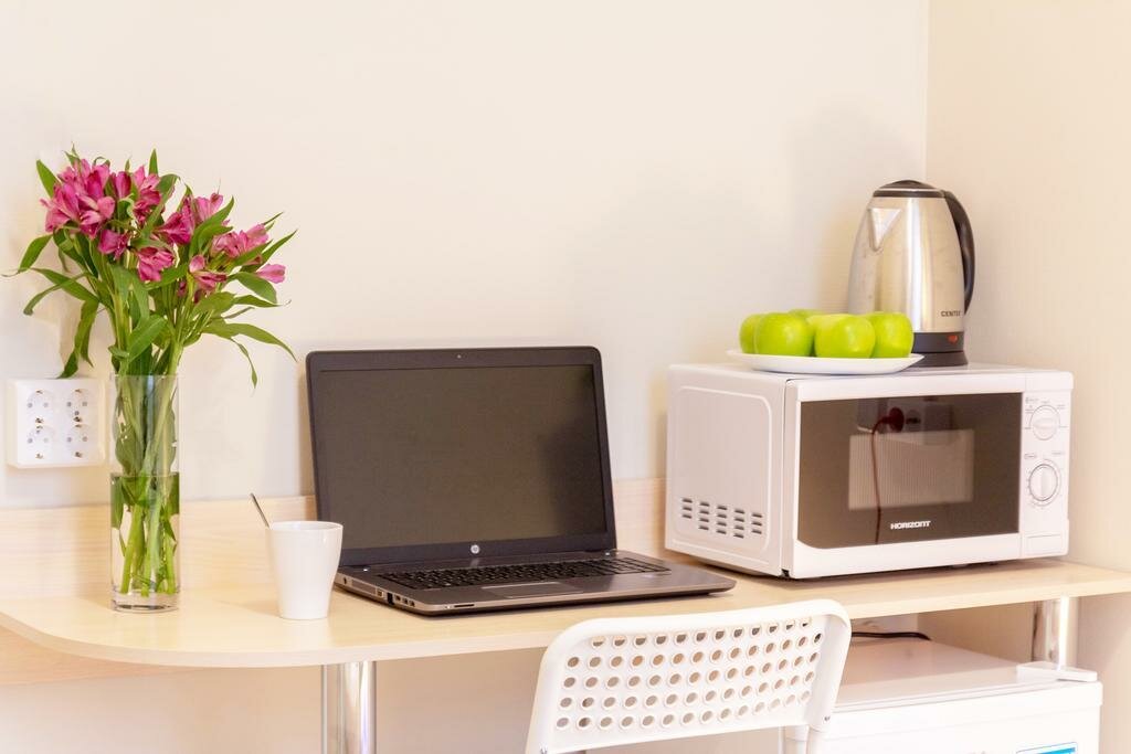- Наличие холодильника, чайника, микроволновки и посуды в номере.