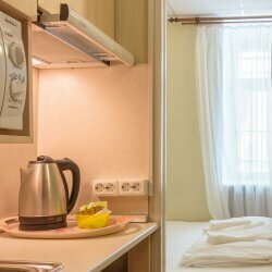 Мой любимый отель теперь. Понравилось абсолютно всё. Персонал вежливый, и с администраторами и с уборщицей, были самые теплые отношения, какие могут быть у гостя. Уборка в номерах регулярная, в номере даже маленький холодильничек есть. Очень нравится кафе, например омлет на завтрак очень нежный, варианты выбора завтрака: хочешь с блинами, хочешь с творогом, хочешь с сосиськой, хочешь яичницу. Девушка в кафе, очень дружелюбная. Во всем этом есть своя незабываемая изюминка. Очень был рад провести у вас время. Спасибо вам всем ! Надеюсь, когда нибудь ещё у вас погостить.