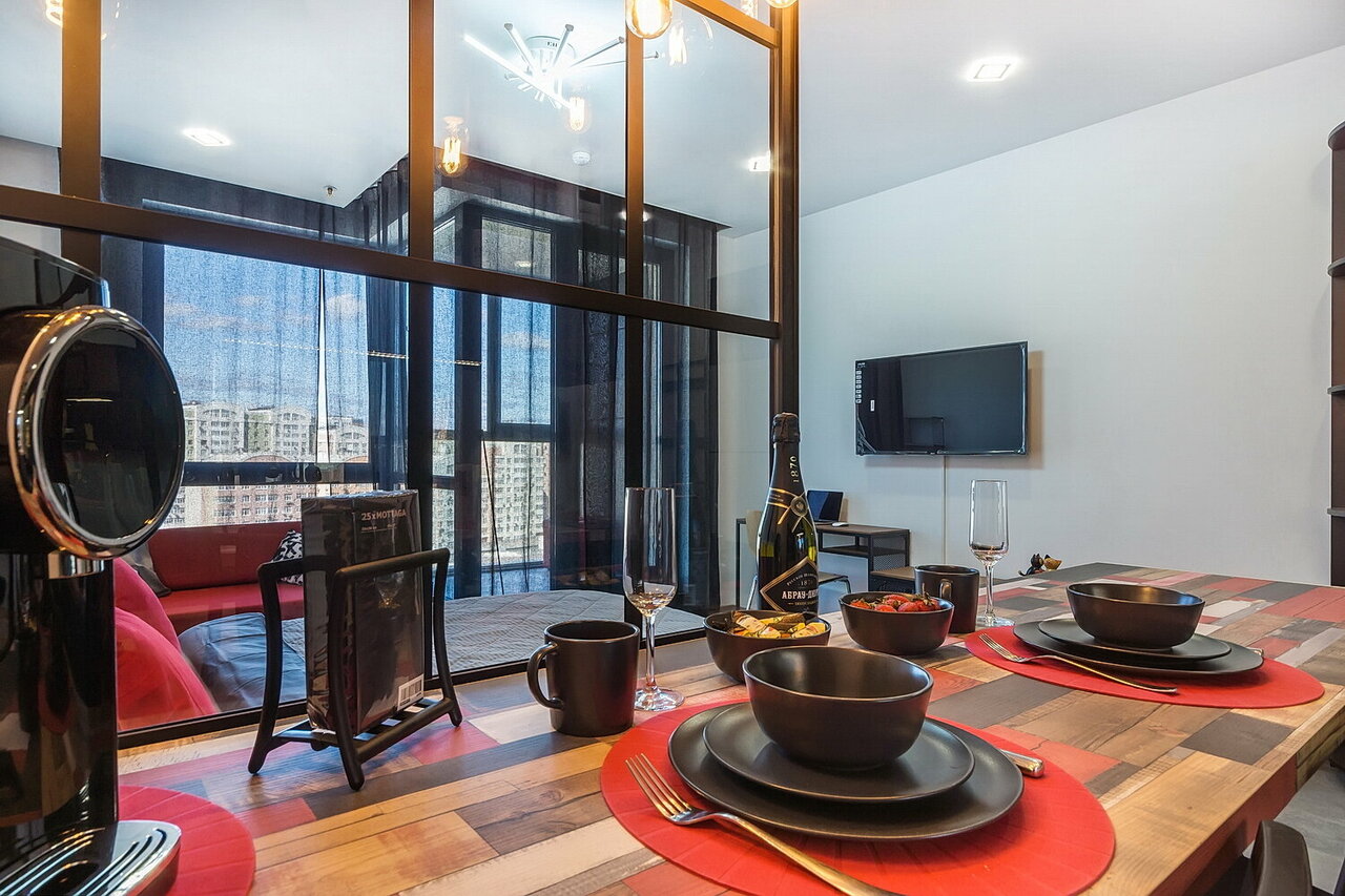 Классные апартаменты! Открываются очень красивые виды. Поблизости есть очень много кафе, ресторанов и тд, далеко ездить не надо) вс понравилось, спасибо)