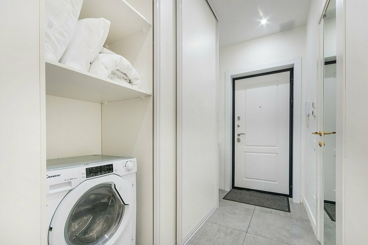 Мне понравилось расположение апартов. Если предупредить заранее то будет въезд под шлагбаум и можно найти парковку прямо рядом с подъездом. Прямо сразу по соседству находится и Авиапарк, что удобно. В номере чисто, есть кондиционер. Шторы блэкаут. Окна выходят во внутренний дворик – поэтому тихо. Соседей не слышал. Здание новое и внутри, в душевой запах как в Египетских отелях – свежий и почему-то напомнил те места (в хорошем смысле этого слова). Из минусов — я не нашел как включить прикроватный свет, но это скорее не минус, а просто квест который я не осилил выполнить.