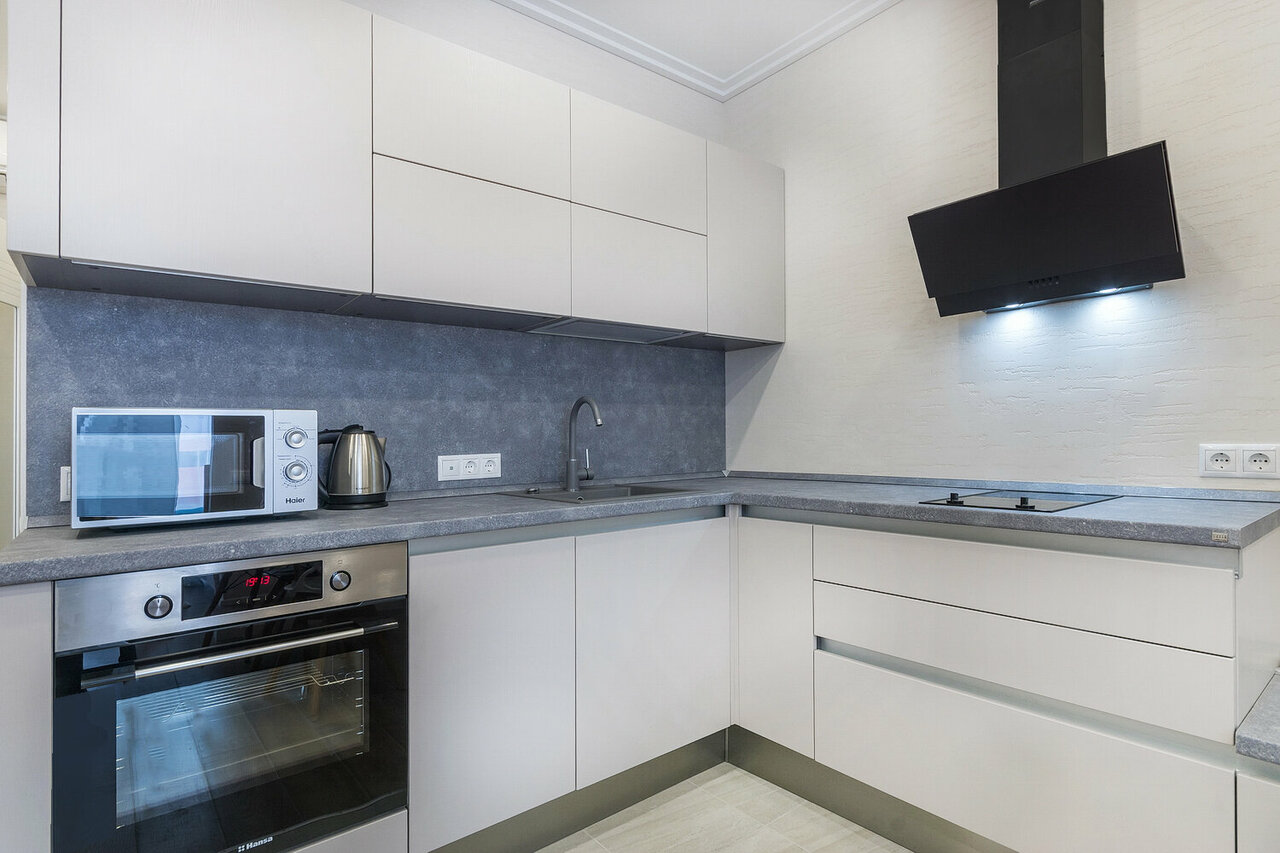 Спасибо за созданные комфортные условия для житья. Есть вся посуда, столовые принадлежности на кухне, очень мягкий диван, большой телевизор. Освещение суперское. Не шумно.