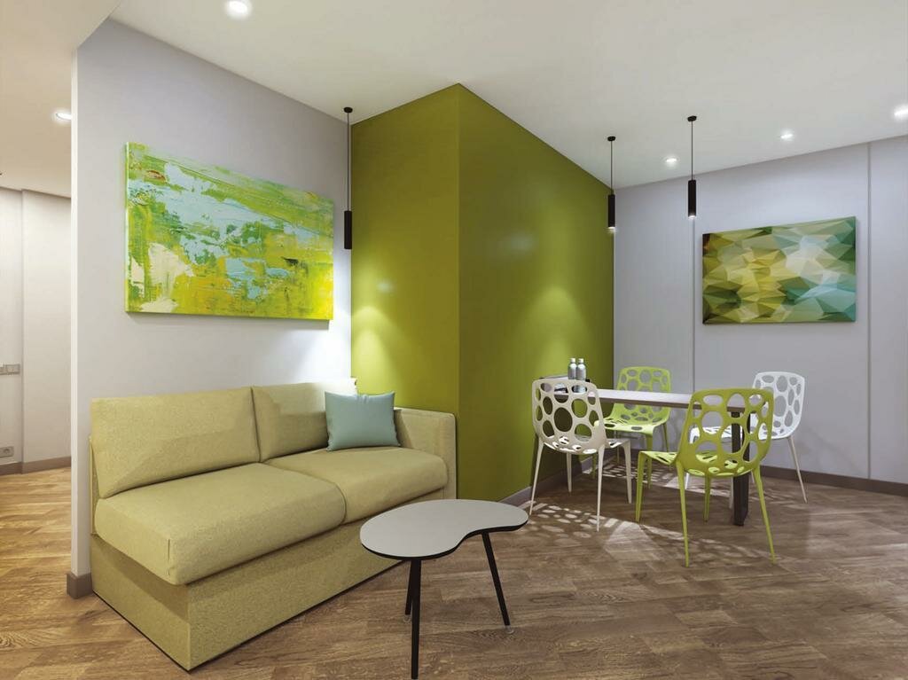 - Удобная лобби-зона с разными зонами для общения.
