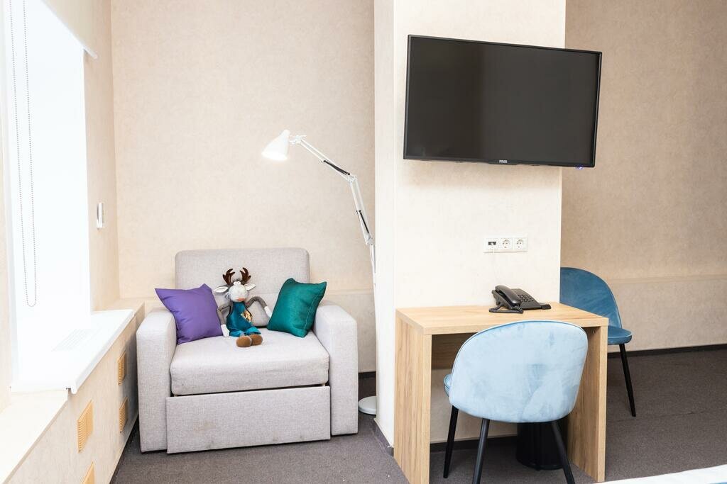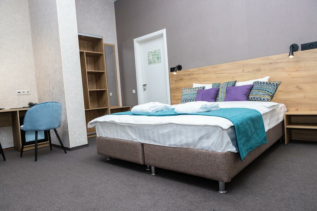 Выберите один из уютных номеров категории 'Стандарт', где предусмотрено всё необходимое для отдыха и работы. Современный дизайн в светлых тонах создаёт ощущение дополнительного пространства.