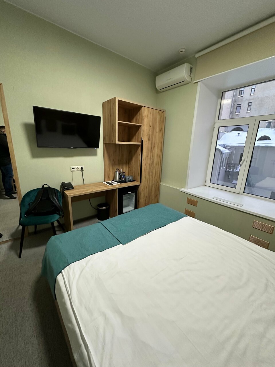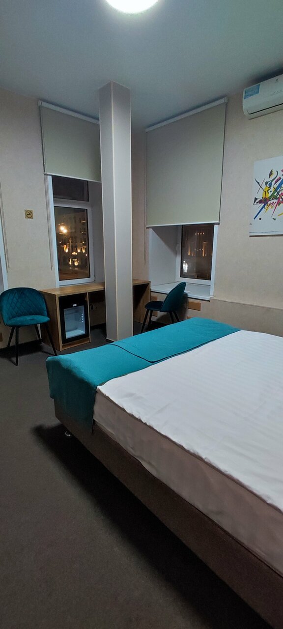 Все что хорошо в этом отели это только расположение, грязно, шумоизоляция отсутствует, даже слышно о чем разговаривают в соседнем номере, под окном что-то торохтит круглосуточно, (администратору сказала, реакции 0) номер очень маленький и тесный в добавок но центру столб.