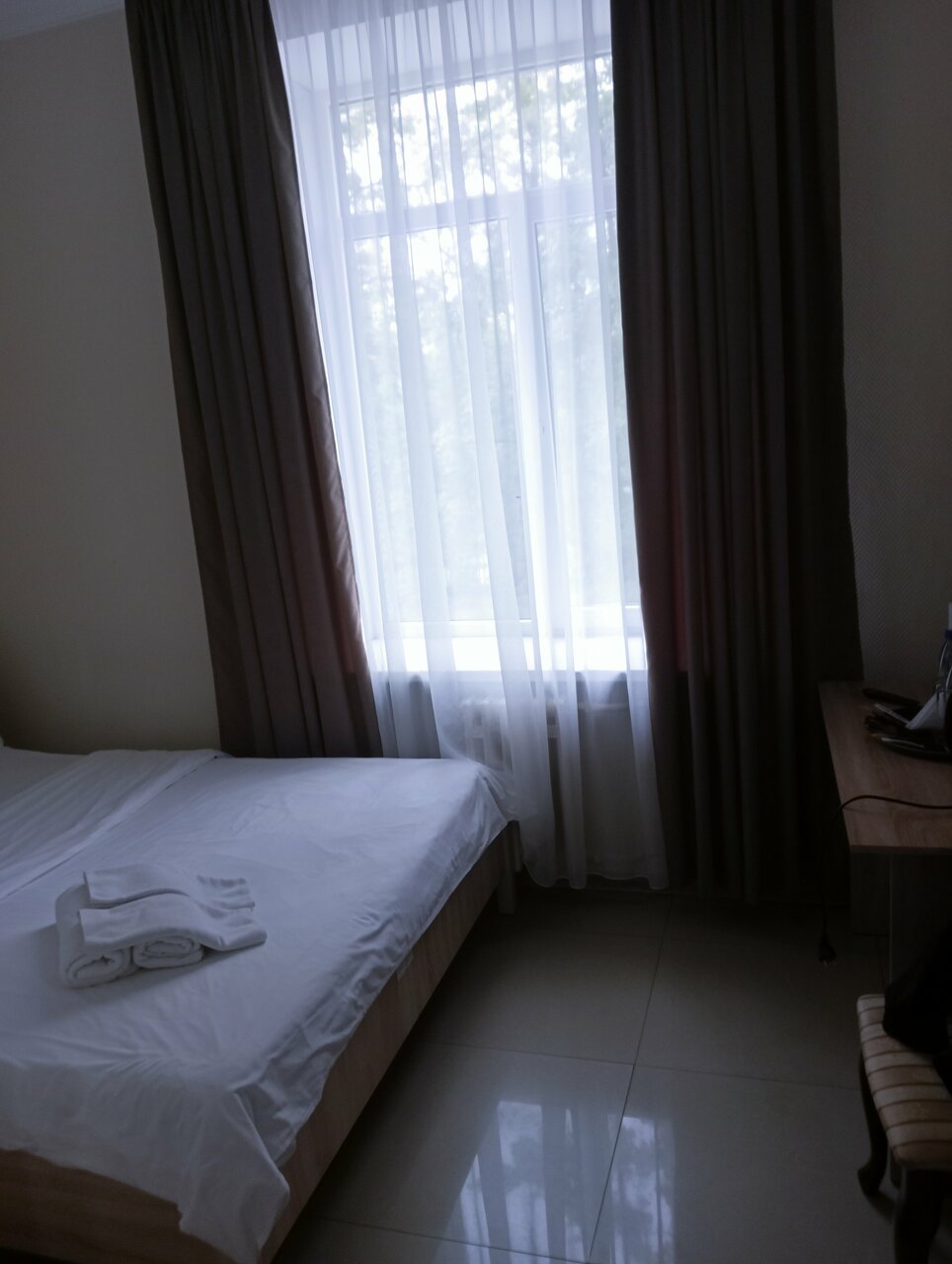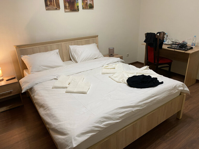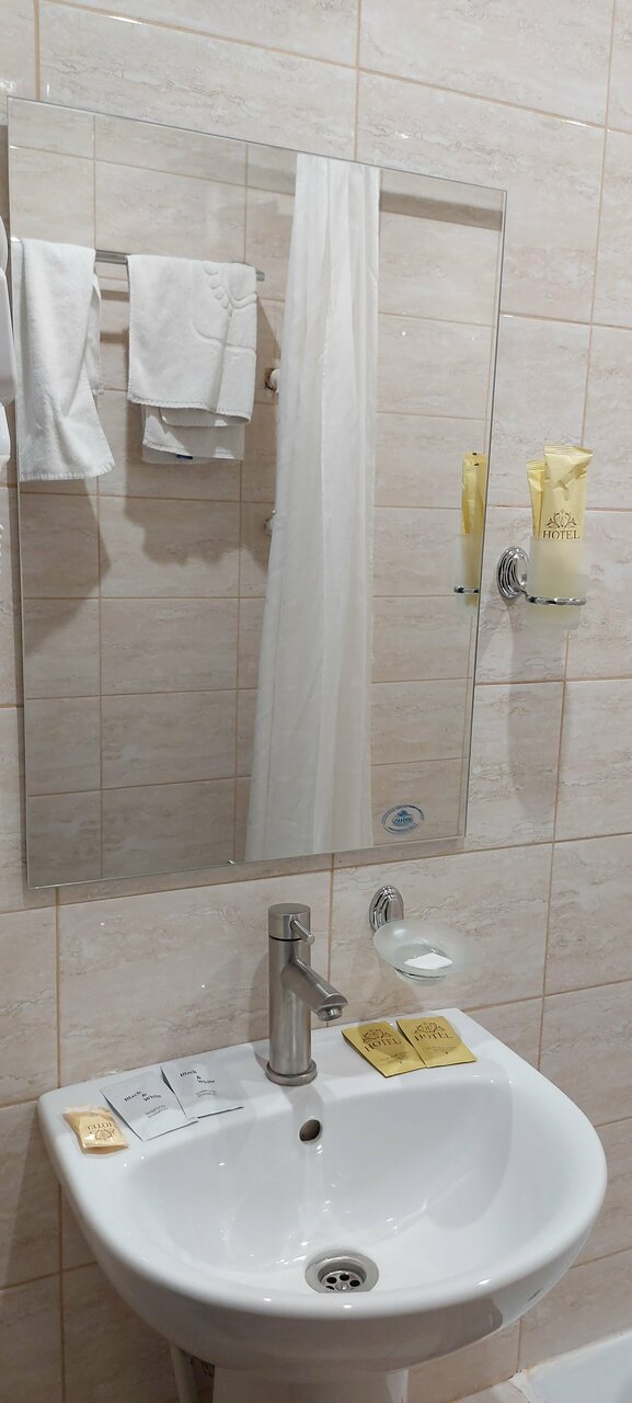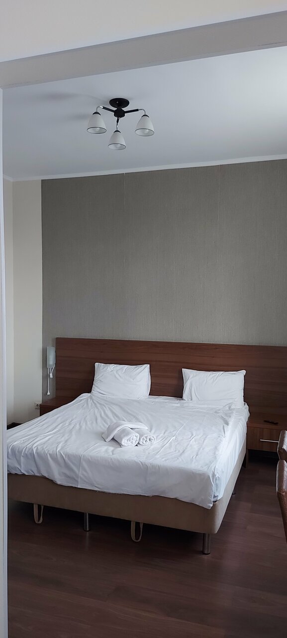 Нужен был отель чисто переночевать и выспаться, миссия была провалена. На ресепшен встретила женщина, которая не знает приветственных слов, при входе сразу говорит паспорт давайте, больше ни слова, и взгляд, будто зачем мы сюда вообще пришли. Уже захотелось просто уйти. Номер слабоват, мягко говоря. В целом чисто, но слишком много косяков: в стенах дырки, которые пытаются замазать и раза в раз, душевая в плачевном виде, везде ржавчина, не хочется даже прикасаться. Вишенкой на торте стала кровать, от которой остались только пружины, спать было просто невозможно, пружины впиваются куда только можно. Постельное белье в дырках, полотенца в желтых пятнах, которые уже не отстирываются. Хотелось как можно быстрее оттуда уехать