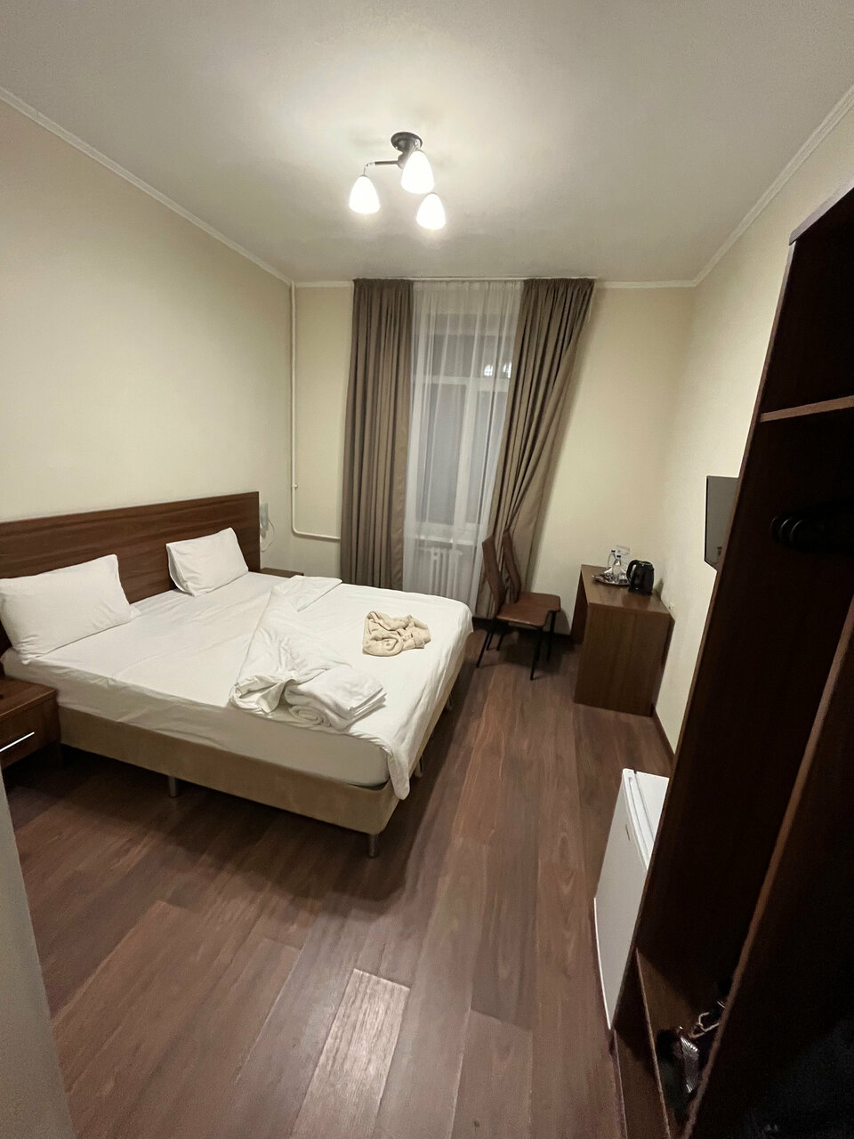 Остановились на две ночи в четвером в Москве.Номер большой ,светлый чистота,в номере есть телевизор,холодильник,чайник .Санузел раздельный,чистый,персонал вежливый.