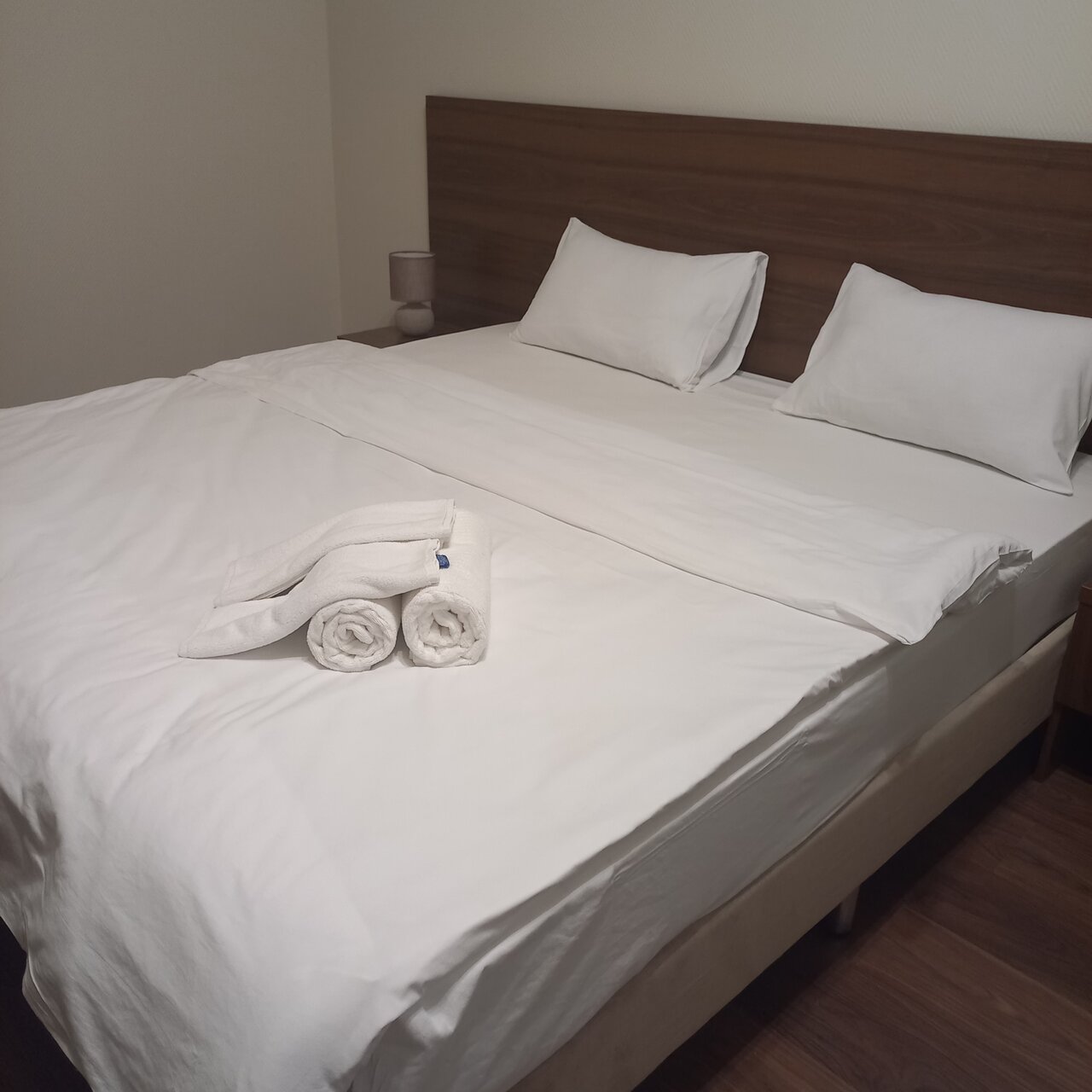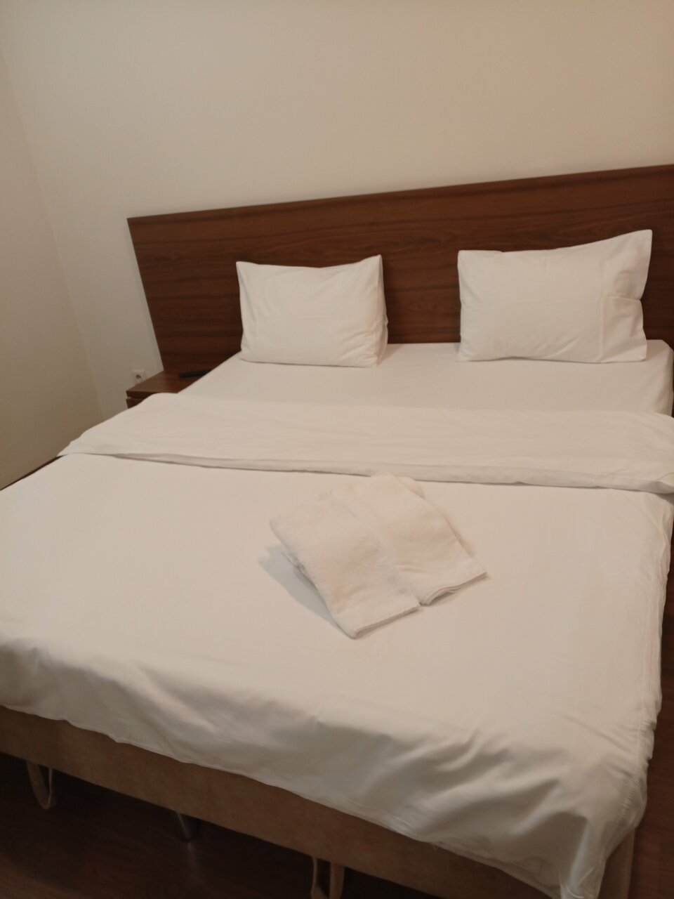 Очень неплохой отель за свои деньги. Жили неделю, можно попросить убраться, и убираются. Есть телевизор, своя душевая а номере, стол, чайник, кофе, чай, чашки, полотенца, даже тапочки. Персонал достаточно приветливый, проблем никаких не было. Из минусов, очень не хватало холодильника и мини кухни. За свои деньги — отлично. А кровать огромная, просто кайф