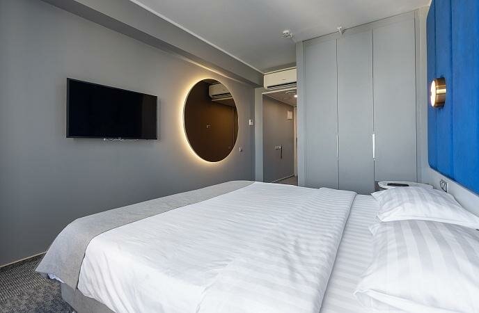 Гостиница на 3 звезды максимум. Из единственного плюса могу отметить только приветливый персонал ресепшн. Все остальное ну очень плохо. В номере ‘супериор’ с 2х местным размещением в шкафу оказалось всего 4 вешалки. Кофе в номере не положили, только чай. Полотенца тонкие и жёсткие. Кондиционер не работал, поскольку работало отопление (февраль), и из-за этого в номере было ну очень жарко. Градусов 30-32 точно, даже с открытым окном. На ресепшн предложили, либо вентилятор, либо переселить в номер классом пониже но ‘с подветренной стороны’, где будет попрохладнее. Это в отеле типа 4* и в номере за 8 тыс.?!? Пришлось плюнуть на деньги и переселяться в другой, нормальный отель. Категорически не рекомендую.