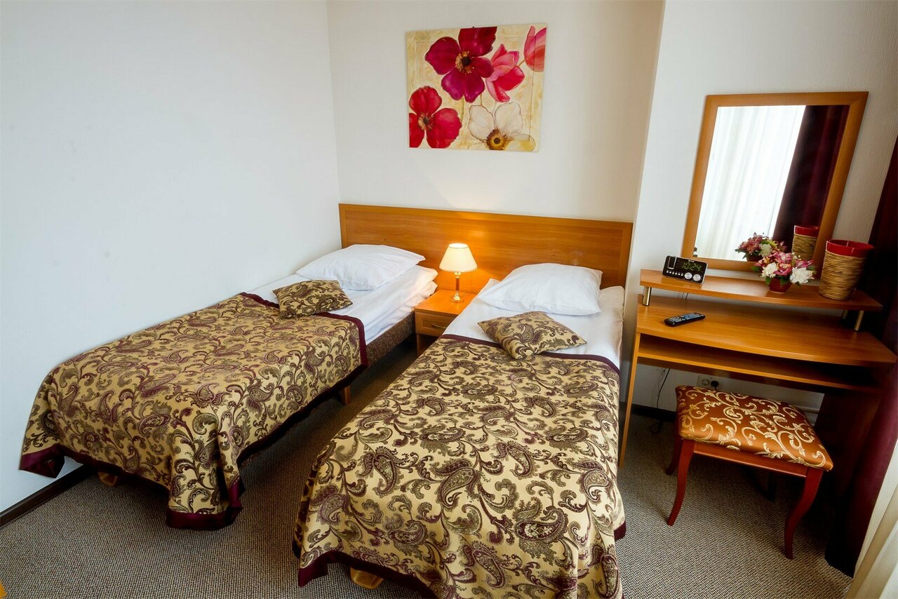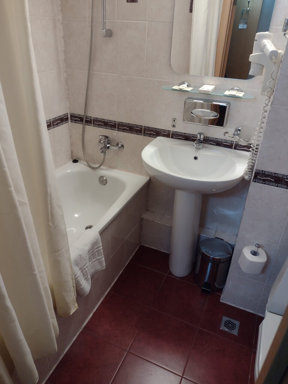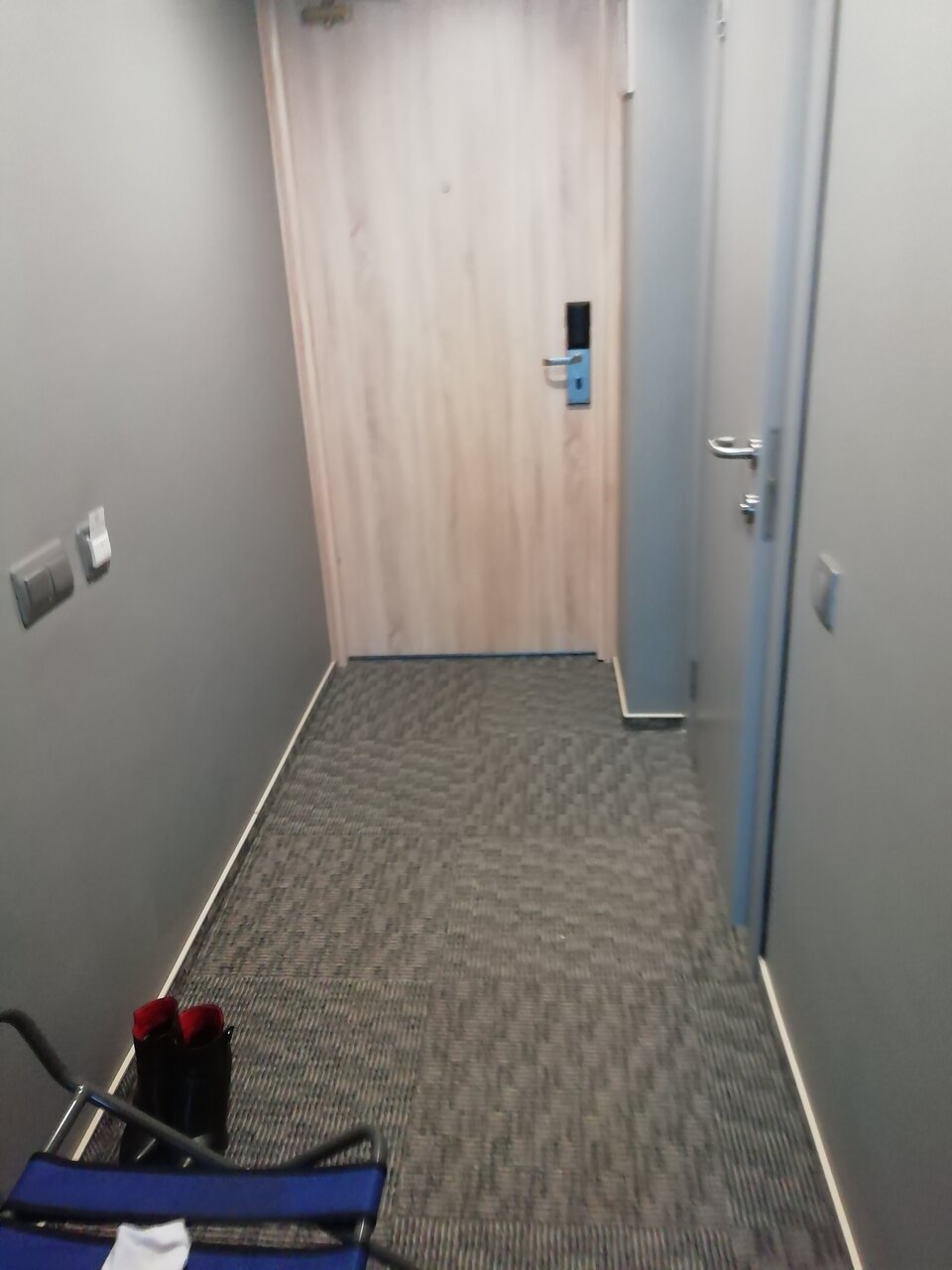 Возможно нам не повезло и есть номера лучше, но в нашем были пятна на паласе и обоях. На стене видели таракана( Весь этаж выглядел так, будто больше 20 лет не делали ремонт и месяцами не убирали. Этаж, на который ходили в гладильную комнату, был ещё хуже. Ковровое покрытие дыбом. Просили поменять номер, тк были с маленьким ребёнком — отказ. Ещё в гостинице уверяли, что у них не курят, но нам в приоткрытую щель Окна прилетела куча пепла, весь стол, посуда, чайник, детские каши и т.д.были им покрыты.