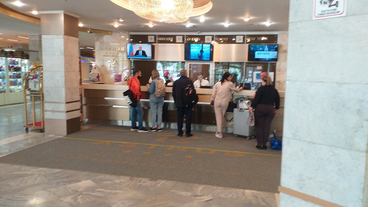 Хорошая гостиница. Шведский стол. Есть несколько ресторанов, кафе. Шесть лифтов. Уборка номеров каждый день. На первом этаже Маркет, озон, парикмахерская, аптека и т.д. Есть своя парковка