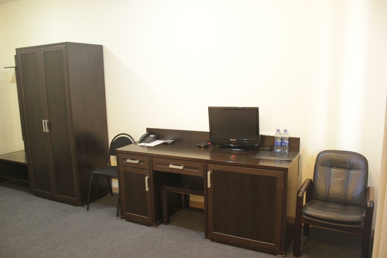 - Вместительный шкаф, телевизор, тапочки, тумбочка