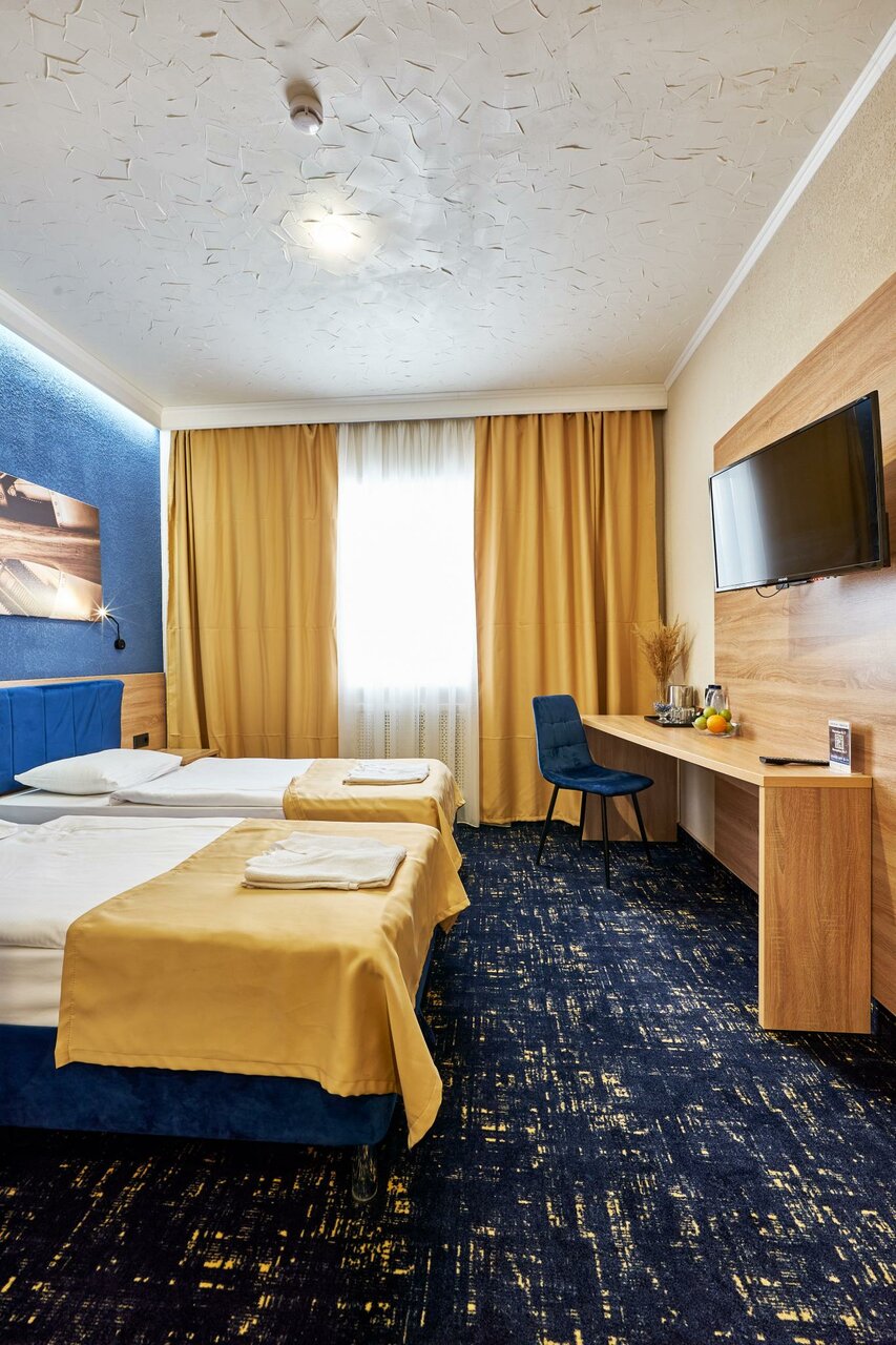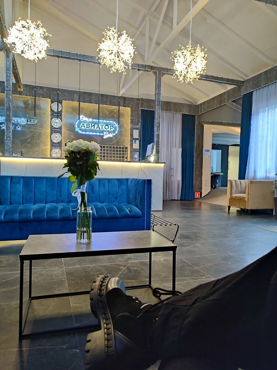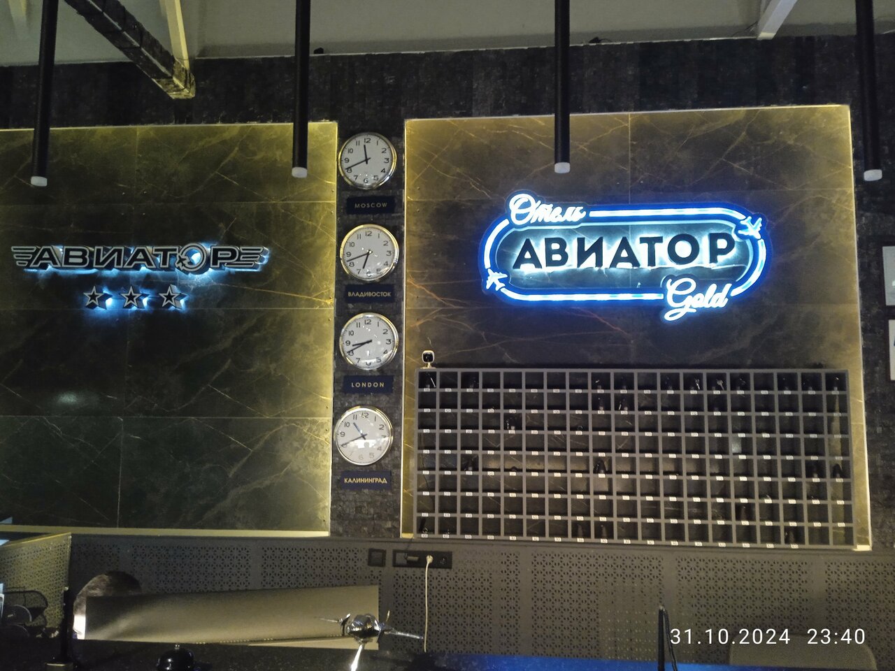 Замечательный отель возле аэропорта. Останавливались два раза и будем также делать впредь. Чистые комнаты и удобные кровати, свежий воздух у лесного массива, вкусные завтраки и блюда в мини-ресторане, но не рекомендуем брать включенный ужин — так себе. Каждый час туда-обратно для постояльцев ходит микроавтобус в аэропорт. Очень удобно на самолет или встретить. Недалеко есть отель Шеремет, крайне не рекомендуем, имели горький опыт проживания. Совсем немного доплатите и, действительно, получите достойный отдых в Авиаторе.