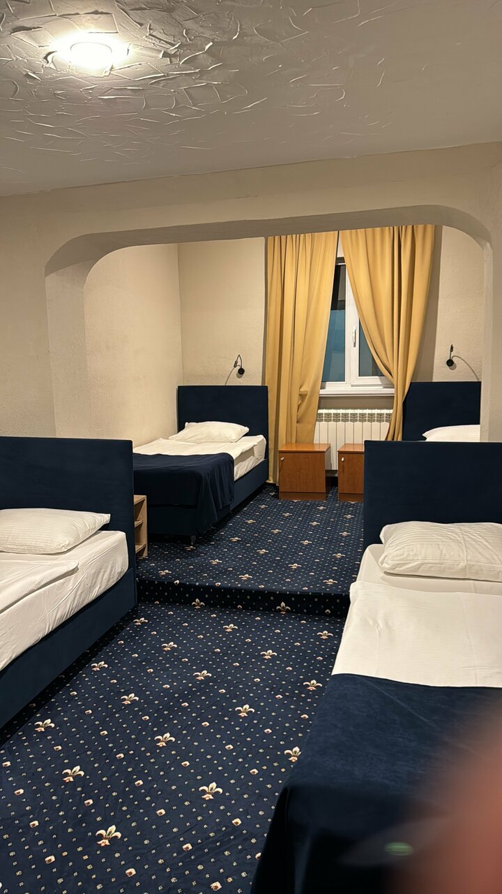 Были в ноябре. Гостиница, чисто переночевать в ожидании рейса. Плюс, что есть трансфер до аэропорта, ехать минут 15-20. Попался номер на первом этаже, комната очень маленькая, ледяной пол, в номере сырость, хотя батареи очень горячие. В гостинице есть свой ресторан. Кухня хорошая, но в зале прохладно